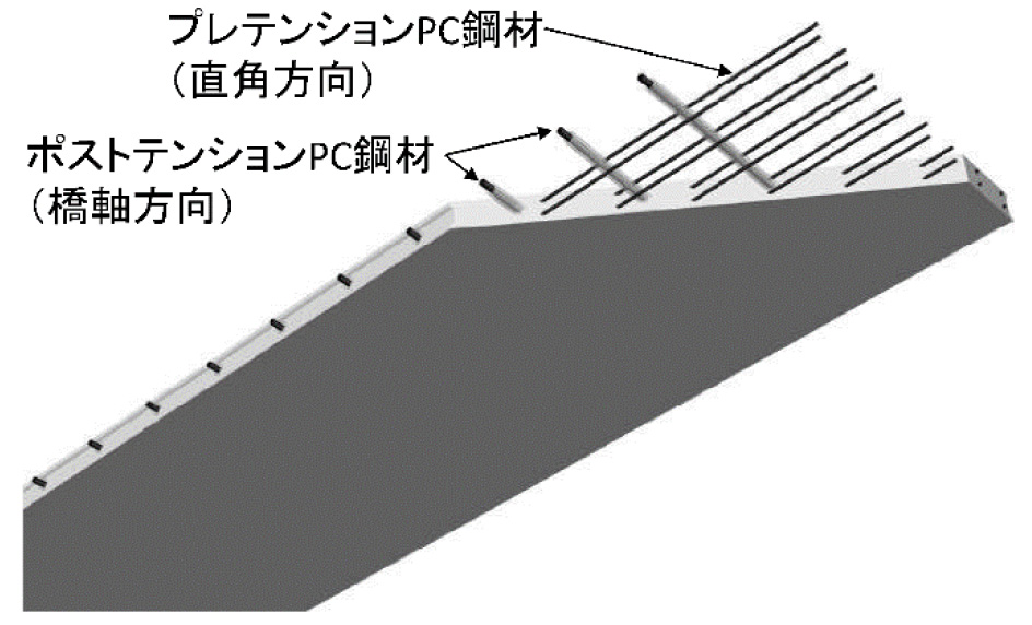 なお大阪では、会議の前日にブリュービラー先生に対して、阪神高速道路のUFC床版を使用した現場の案内があったので、北海道大学の松本高志教授とともに、筆者も通訳として同行させてもらった。現場付近にある阪神高速先進技術研究所において、阪神高速道路の小坂崇課長から、UFC床版の概要と阪神高速道への適用についての説明があった。日本特有の施工速度を得るために、プレキャストUFC床版の橋軸方向支間を2.5mとし、小型クレーン等で順次、架設していく技術は、汎用性が高いと言える。鋼桁の床版取替えに対応した平板型UFC床版を以下に示す(図-28,30)。橋軸方向はポストテンションPC構造、橋軸直角方向は、プレテンションPC構造としている。また、新設橋への適用として、ワッフル型UFC床版の開発も行っている(図-29)。