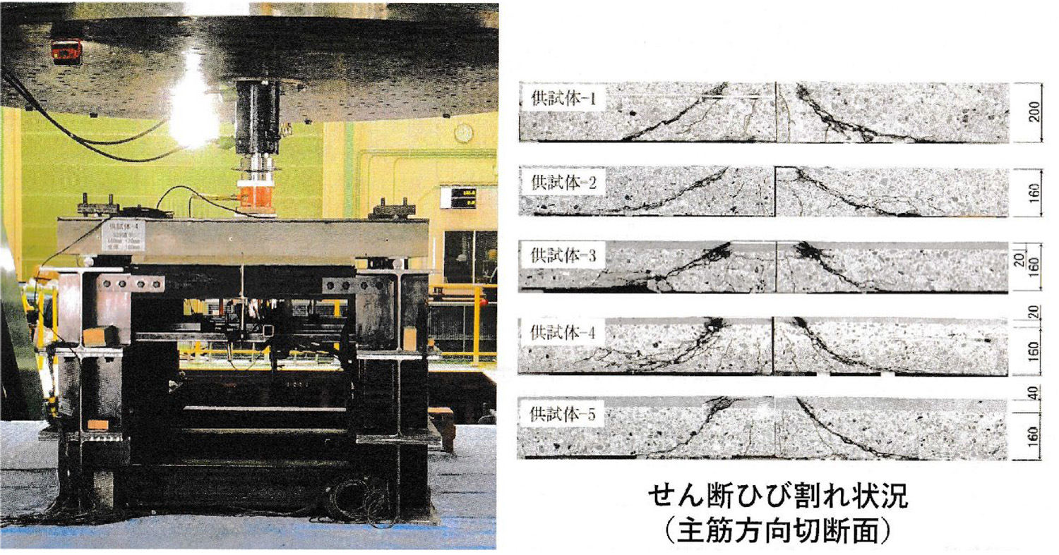 図-34 押し抜きせん断試験状況とひび割れ状況(J-テイフコム技術研究会)