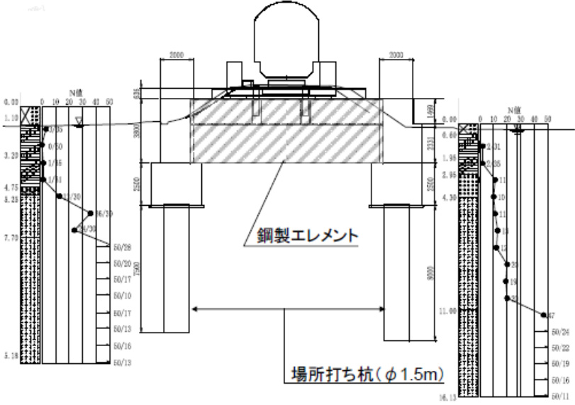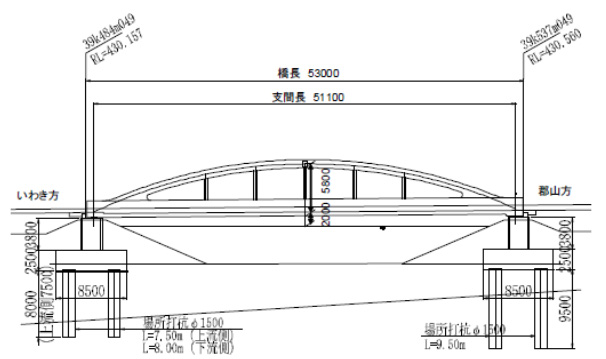図5 磐越東線夏井•小野新町間の新橋下部工一般図 / 図6 磐越東線夏井•小野新町間の新橋側面図
