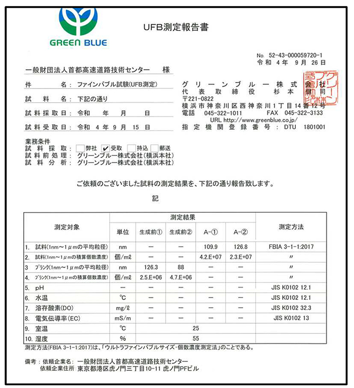 図-10 UFB測定結果報告書:生成装置C