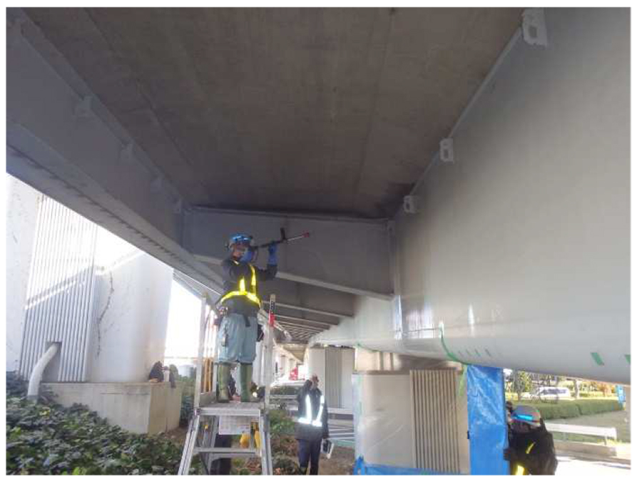 第1回、第2回と同様に、実橋を対象にUFB水による構造物洗浄試験施工を行い、UFB水と水道水の洗浄効果の差異を検証する目的で行った。洗浄対象橋梁は、第1回、第2回で試験施工を行った同一の橋梁(鋼床版箱桁橋)を対象とし、洗浄箇所を他の範囲に移して行った。