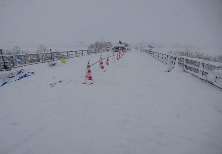 図-11 気温-7℃下の岩三沢・二股橋の補修・補強(2018/3)
