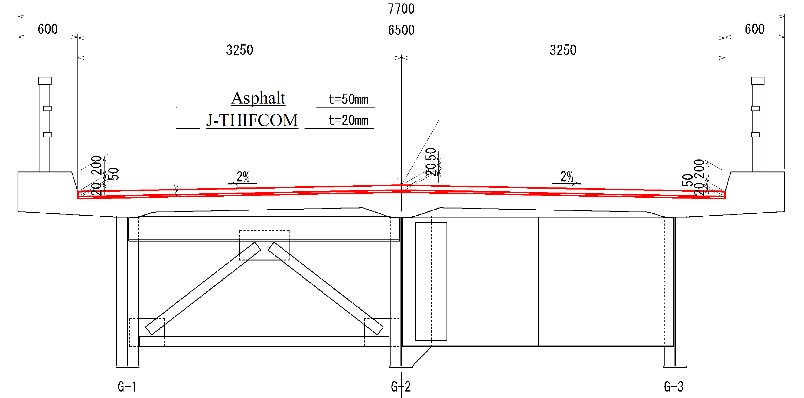 床版は、舗装を撤去後、ウオータジェットで研掃し、20㎜のJ-テイフコムを施工した。また、鋼桁は、旧塗装を除去後に、外桁下面および端部ウェブは鋼板で補強した(図-20)。これらの補強によって、20トン車の通行が可能となり、さらに排水設備の充実によって、耐久性が向上した。
