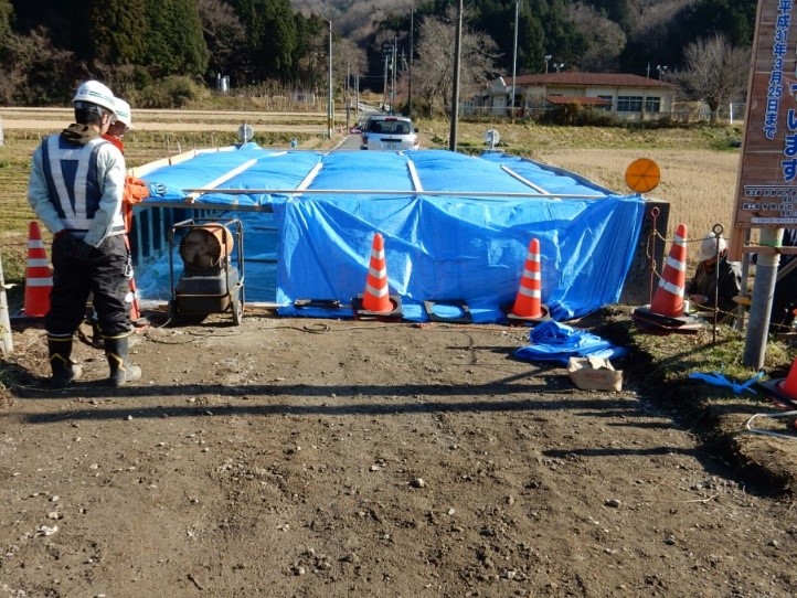 図-17 ジェットヒーターとブルーシートによる温風養生