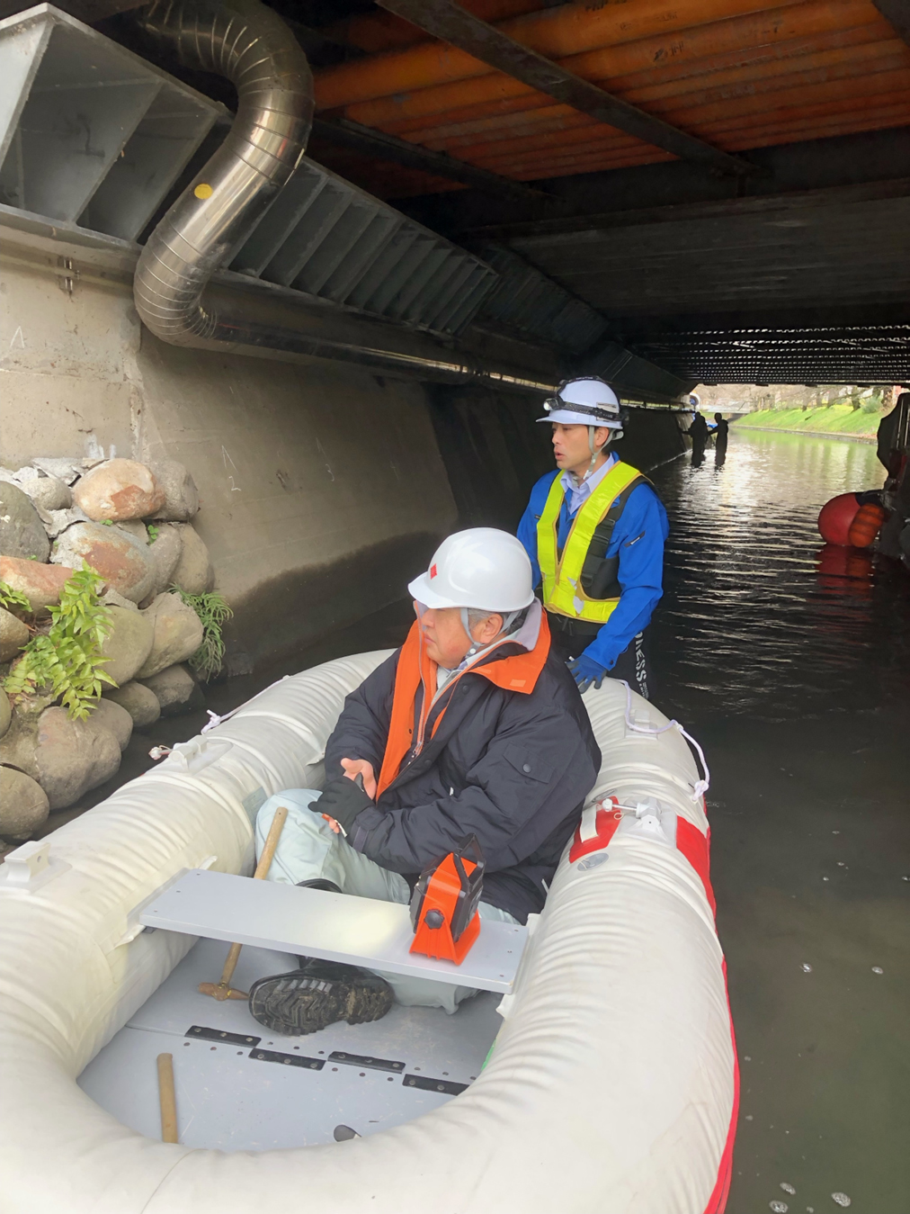 橋梁下部工の点検(年寄りは、冷えるのでボートの乗ってます)