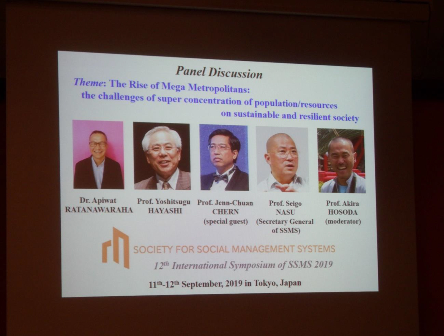 2019年9月中旬に、SSMS(Society of Social Management System、社会マネジメントシステム学会)の第12回目の国際会議が東京大学で開催されました。私の師匠の岡村甫先生の提唱で始まった学会です。今回は、私の卒業論文の指導教員の小澤一雅教授(東京大学)が実行委員長を務められ、私も5つの招待講演やパネルディスカッションを担当する幹事を務めました。学会のテーマが「巨大都市への過剰な集中」だったので、京都大学の藤井聡先生、東京大学生産技術研究所の沖大幹教授、SSMS学会長に新たに就任された林良嗣先生(名古屋大学名誉教授)ら5名を招待講演にお招きし、パネルディスカッションでの活発な討論も行いました(写真2)。