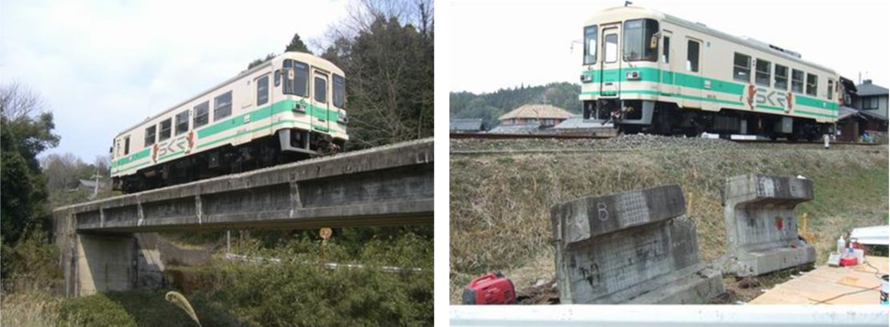 写真4 2008年に調査した第一大戸川橋梁とその近くに暴露されている標準桁(試験体)