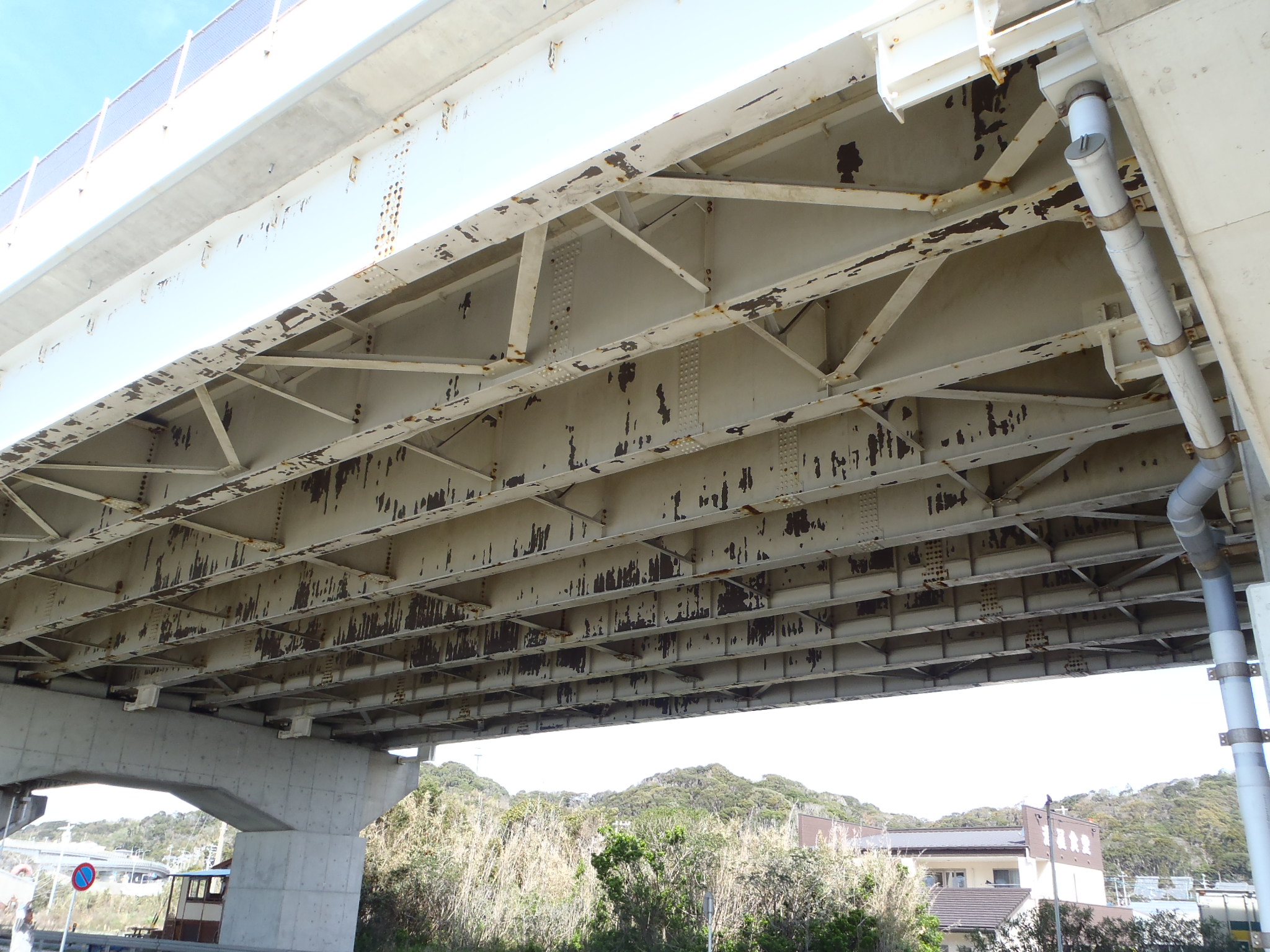 同橋梁は、太平洋岸に近接しており、塩害の影響を強く受けている。また遮蔽物もなく紫外線の影響をもろに受ける。