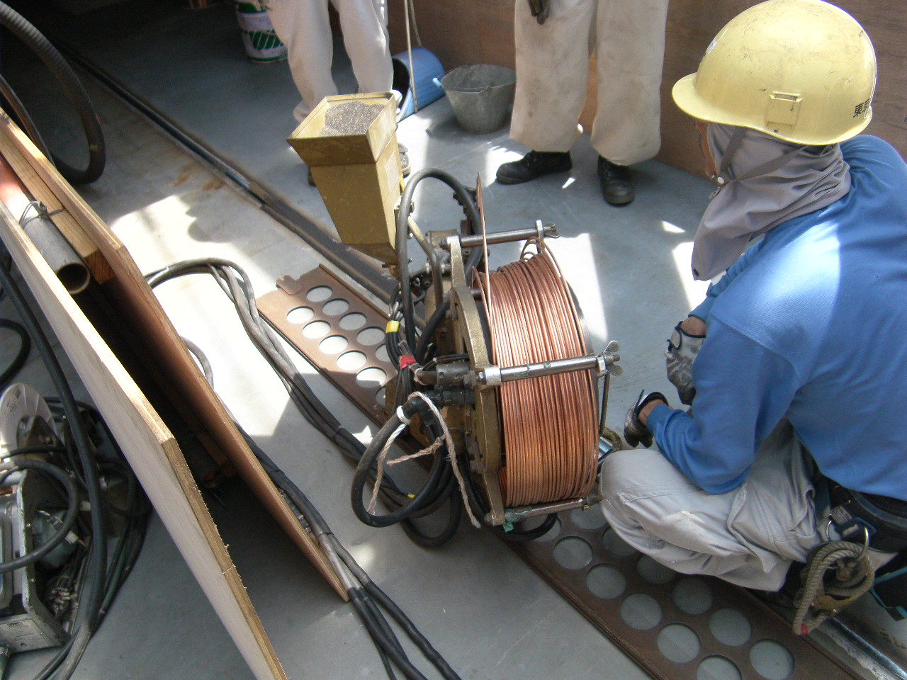 基礎工についても、塩害による防食に配慮している。具体的には全ての鋼管杭基礎にアルミニウム丸棒を犠牲陽極に用いた電気防食工法を設置し、100年間の耐久性能を期待している。