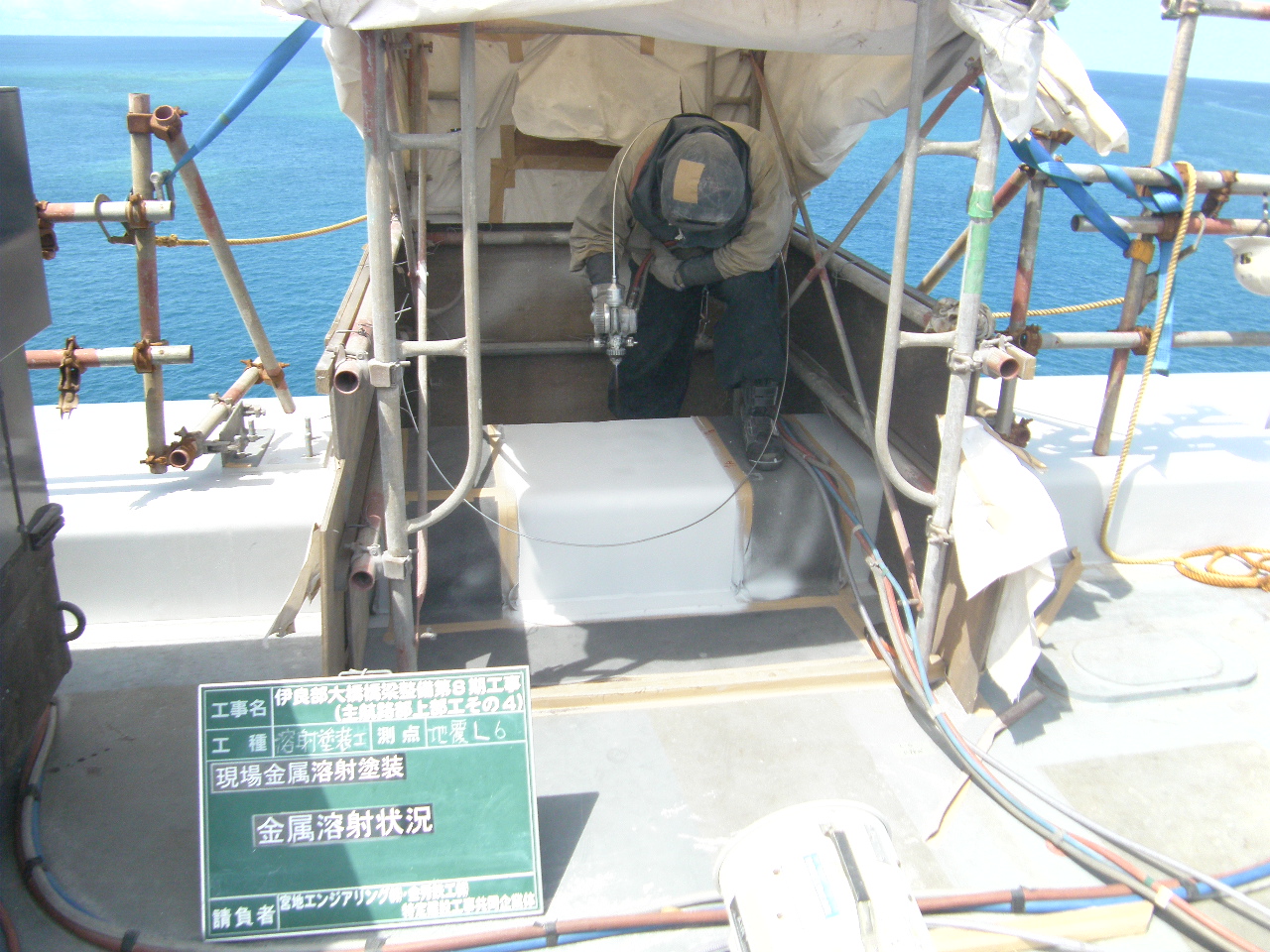 Al・Mg溶射はアルミ95%+マグネシウム5%の材料を使っている。「犠牲防食作用による耐久性に優れており、メンテナンスし難い場所にあることからLCCを考慮し採用した」(同事務所)。なお、初期の塗装劣化部を補修する部分補修は5年目、全体的な塗装塗り替え(溶射部は除く)は30年目を予定している。