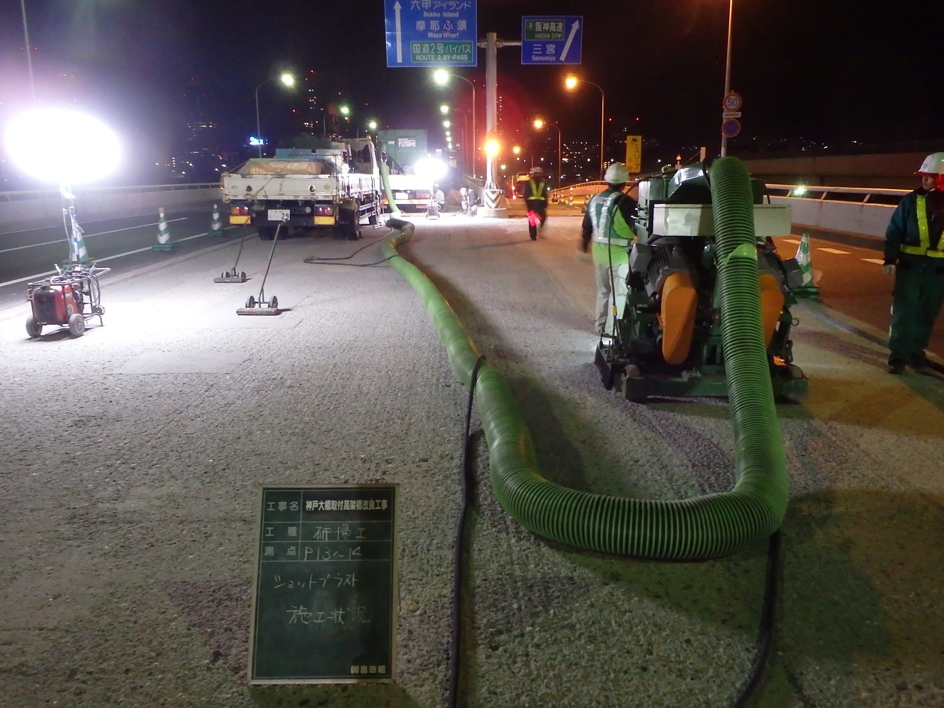 ショットブラストは1平方㍍あたり150㌔の投射密度で施工した