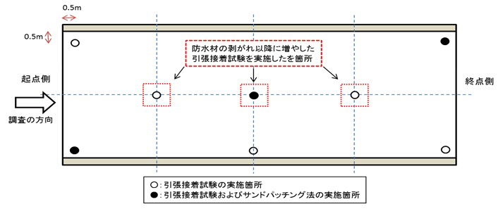 図-3 引張接着試験およびサンドパッチング法の実施箇所