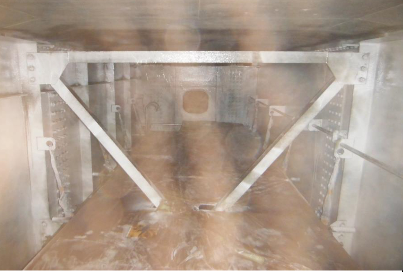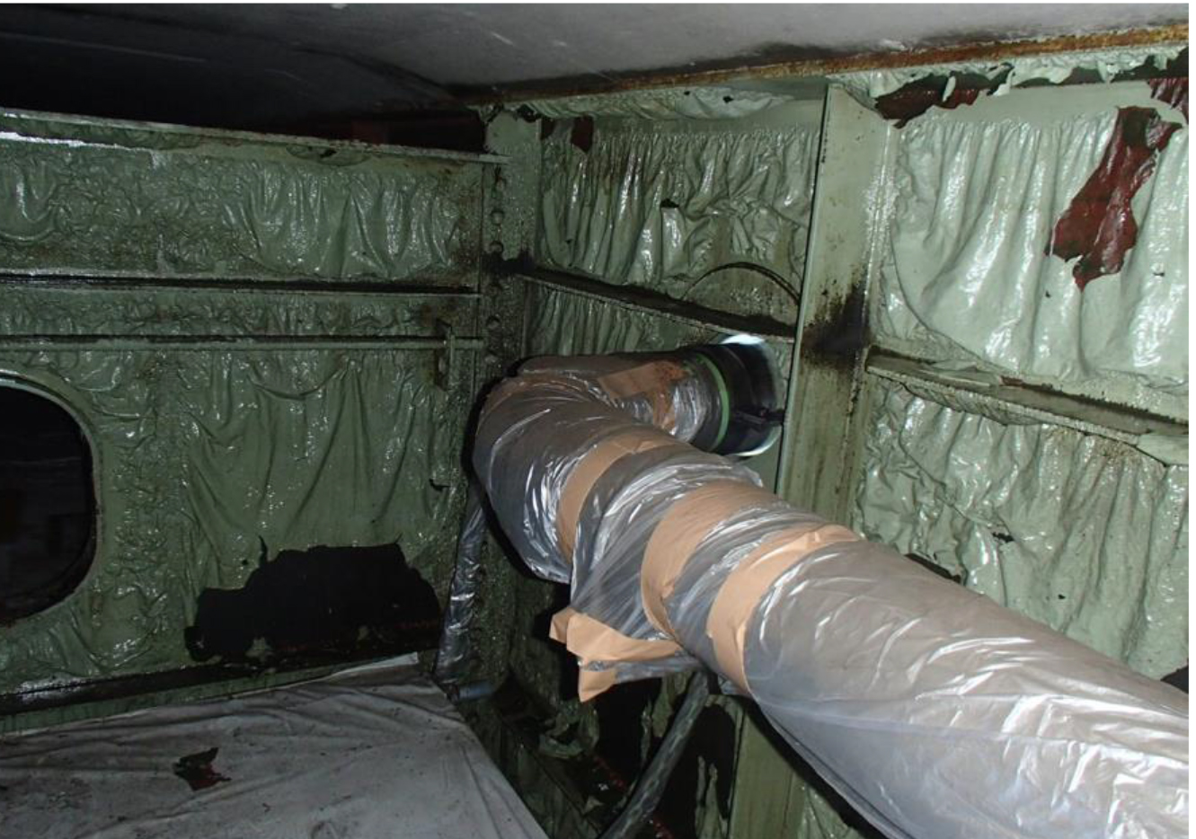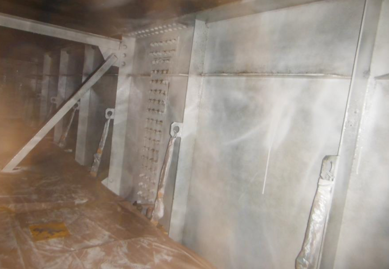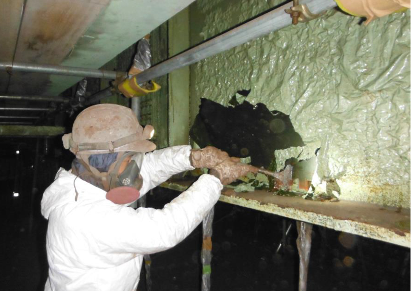 ミストブラスト工法は、ブラストの際、水をごく少量含ませることによって粉塵濃度を抑制する工法で、試験の結果、期待通りに粉塵濃度を下げつつ、隅角部や端部の塗膜を除去し、良好な下地を形成することができた。ケレン材は錆を生じさせないようスチールグリッドは使わず、非鉄金属系の研削材を用いている。水は塗膜滓と混在するが、「現場では防護シートから塗膜カス、水まで全て特別管理廃棄物として廃棄する」ことで法令に基づいた処理を行う。