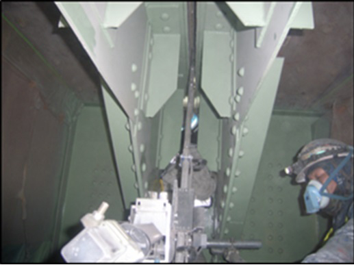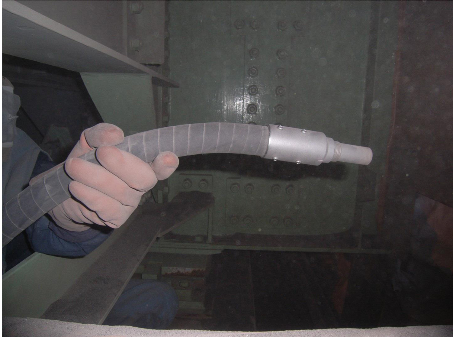 遊間幅は40㍉以上という制約があるものの、端横桁や主桁、ブラケットなどに固定し、上下方向および橋軸直角方向に移動できることやブラスト度合いを管理するため作動スピードを調整できる――などの仕組みをほぼ可能にした。設置は人力であるものの、設置以後は自動操作できるため、作業者への粉じんの影響を少なくすることができる。