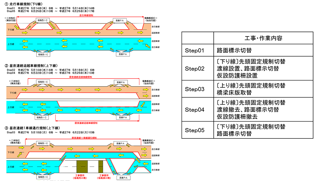 東北道福島西IC~福島飯坂IC間での2橋同時施工による床版取替