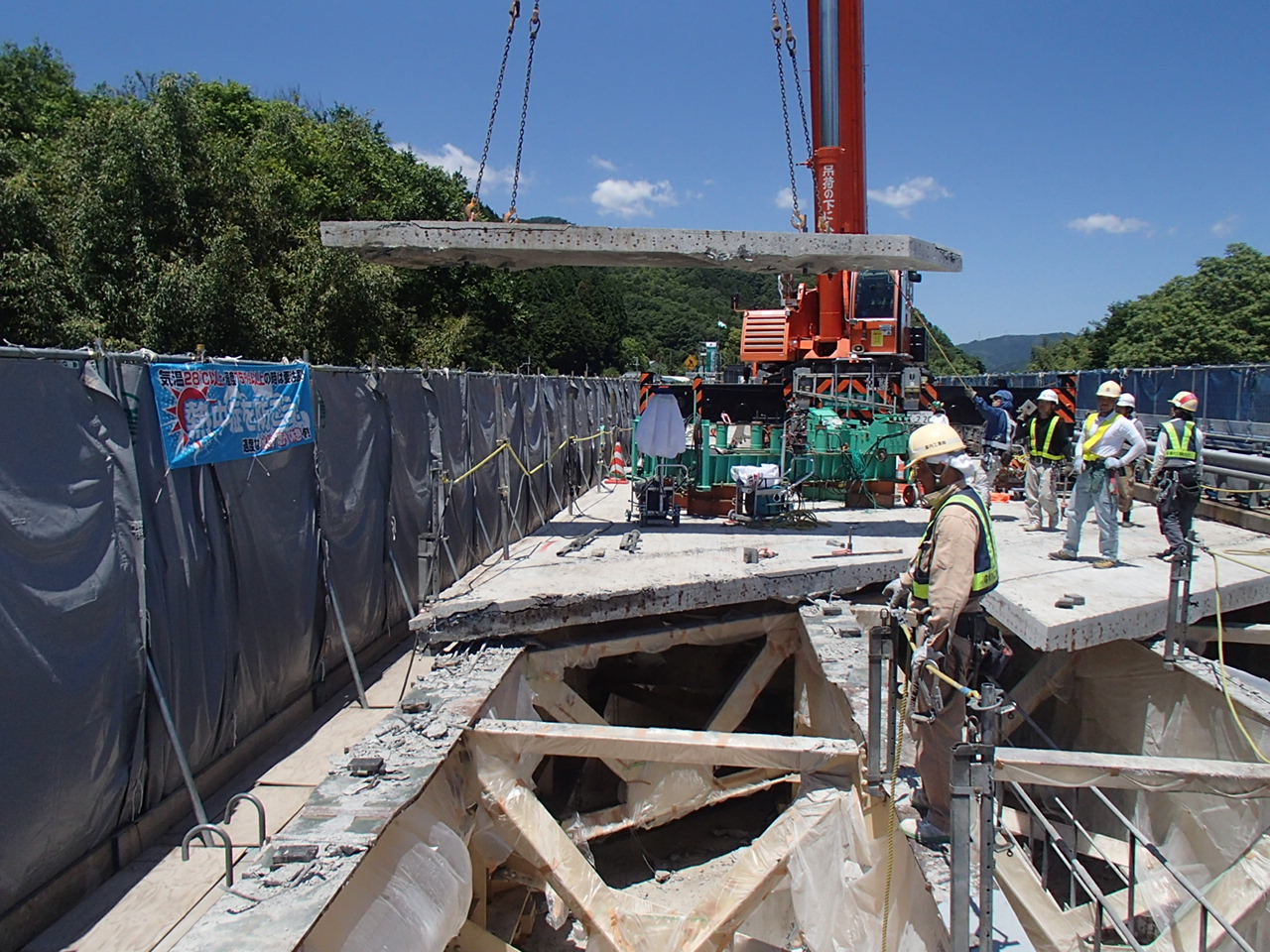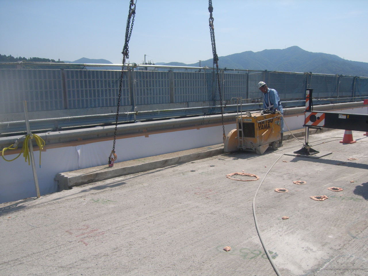 切断工 床版上下から施工を監視