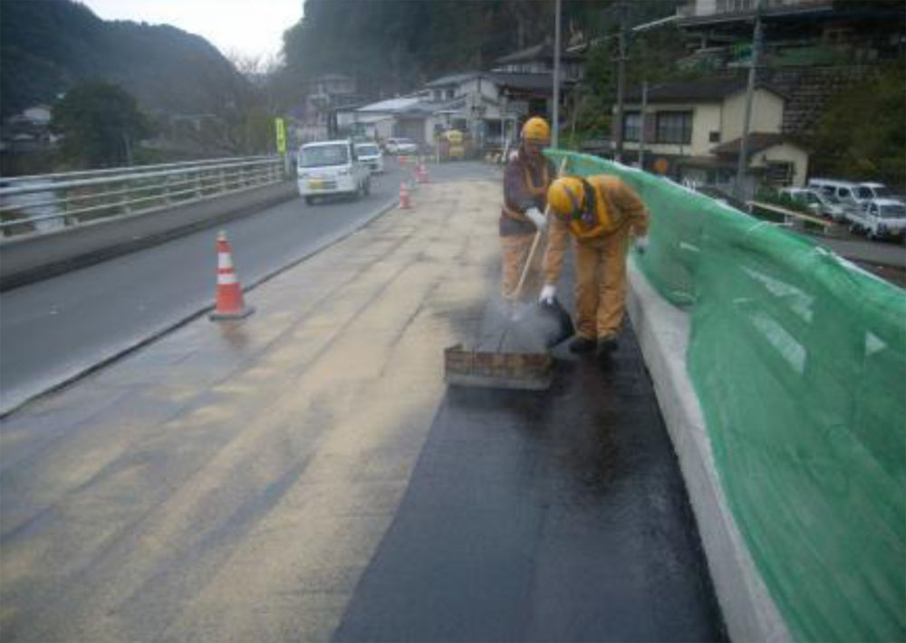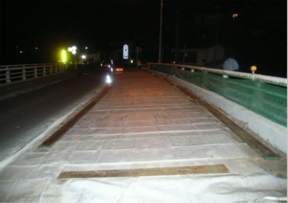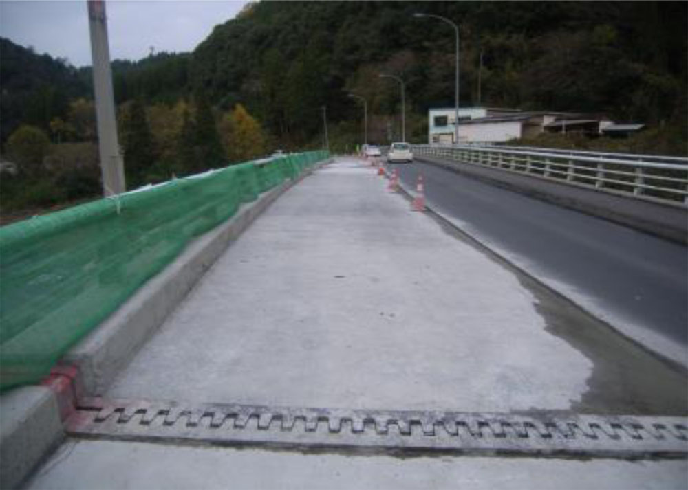 施工後は表面含浸材(リバコン・リキッド)を塗布し、コンクリートの防水層としての機能を持たせている。但し、A1~P1下り車線の歩道との境界部はそのままの状態で打設しており、漏水を考慮すると、取り合い部のみシール状に何らかの防水層を設置することは考慮すべきかも知れない。