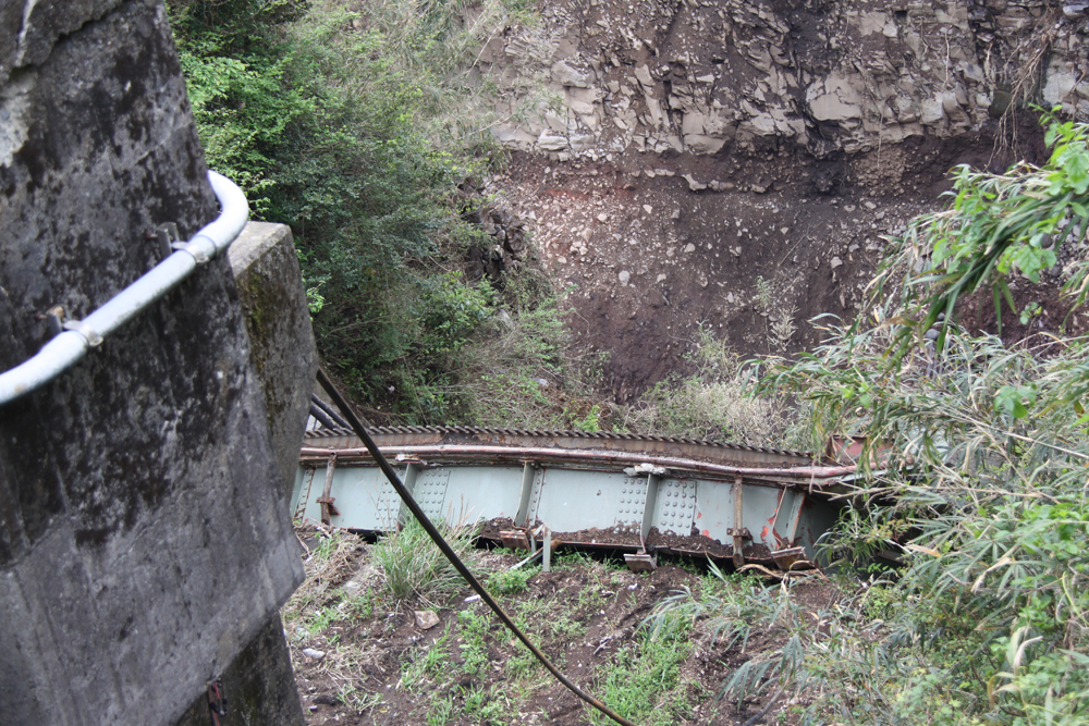 戸下大橋は斜面崩壊により桁が落ちており、これ以上進めなかった