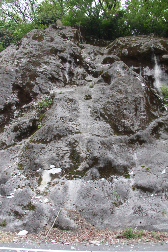 そして阿蘇大橋、立ち尽くすほかはない。崩落現場を見た時言葉が出なかった。阿蘇大橋は数十㍍の高さに及ぶ斜面崩壊に巻き込まれて右岸側から崩落、左岸側の一部に桁の残骸が見える。支承は脱落し、落橋防止装置は引きちぎられている。東日本大震災の時にも見た絵面だ。あの時は津波だったが、自然の大きな力に対しこれらはあまりにも無力だ(無意味ではない)。阿蘇大橋は黒川地区の発展に大きく寄与した橋で、東海大学阿蘇キャンパスの大手門ともいうべき構造物だが、常識的に見て同じ所に橋を架けることは難しいだろう。崩落した国道57号も同様で、滝室坂のようなトンネル形式の事業化が想定される。