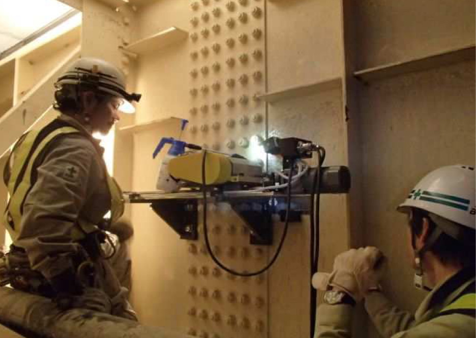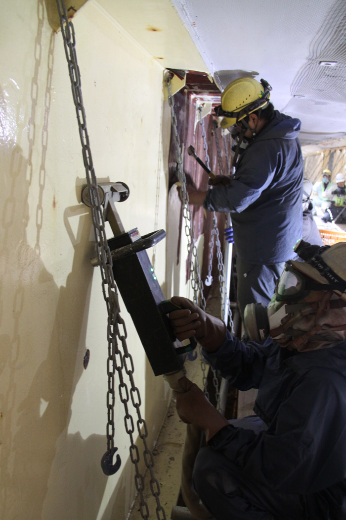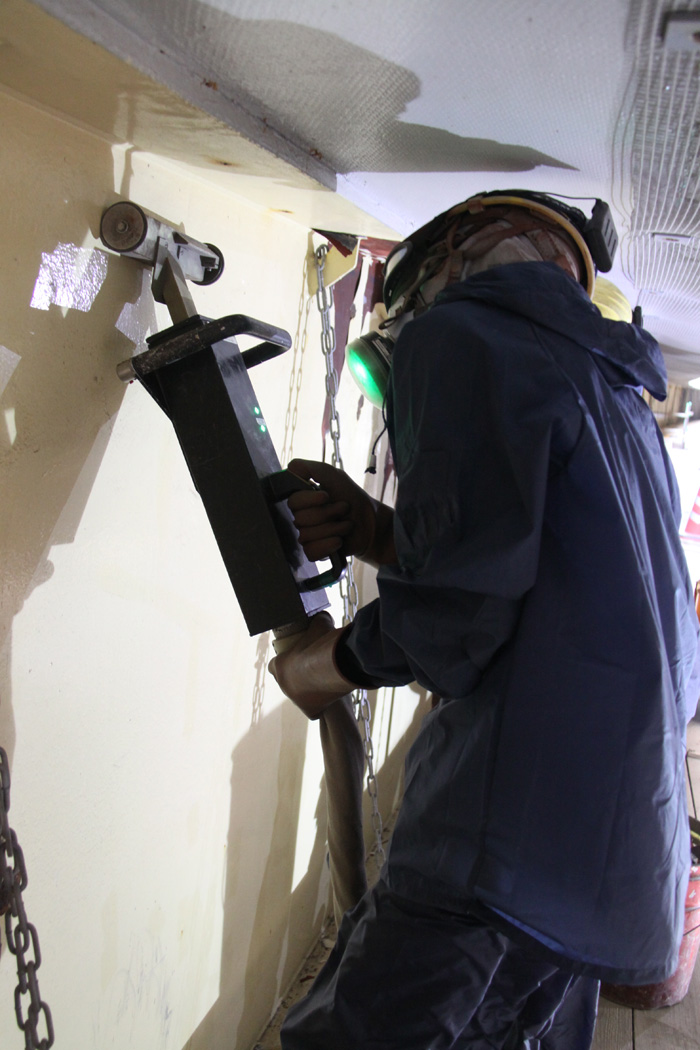 隅角など狭隘な箇所にはヘッド形状などからRPR装置は使用できないため、ブリストルブラスターや狭隘部用の電動工具で対応している。なお、1種ケレンでの仕様であるため、最終的にはブラスト(投射材はフェロニッケル系の「ネオブラスト」を採用)を施している。