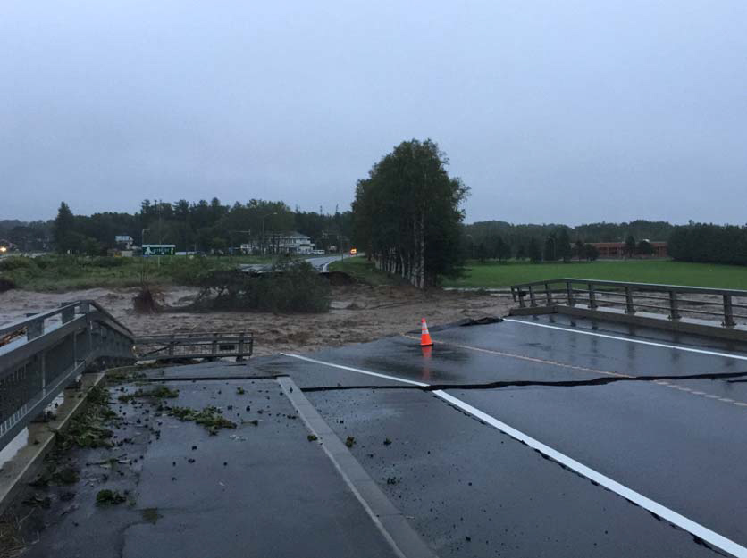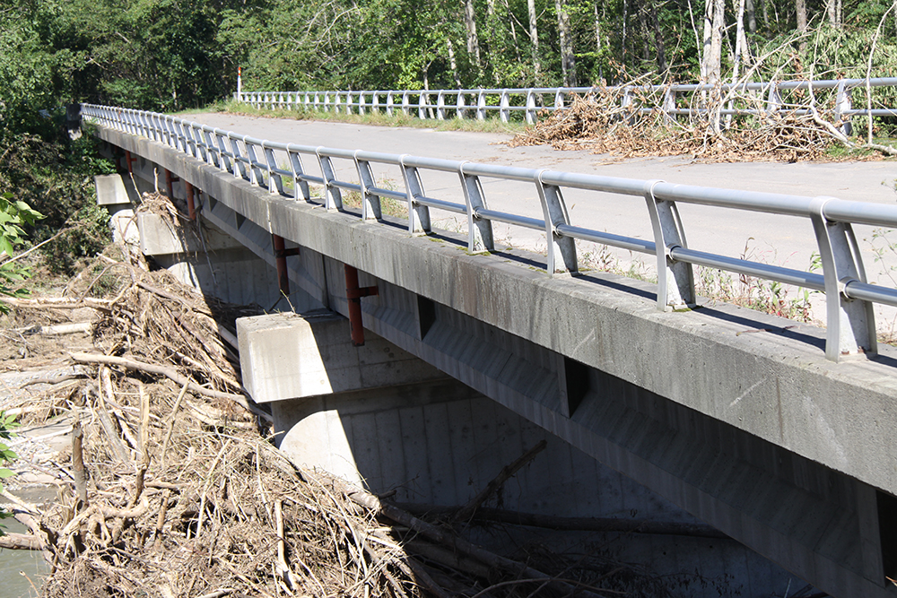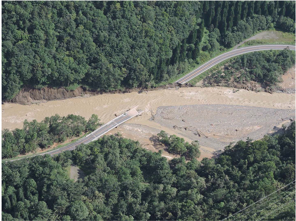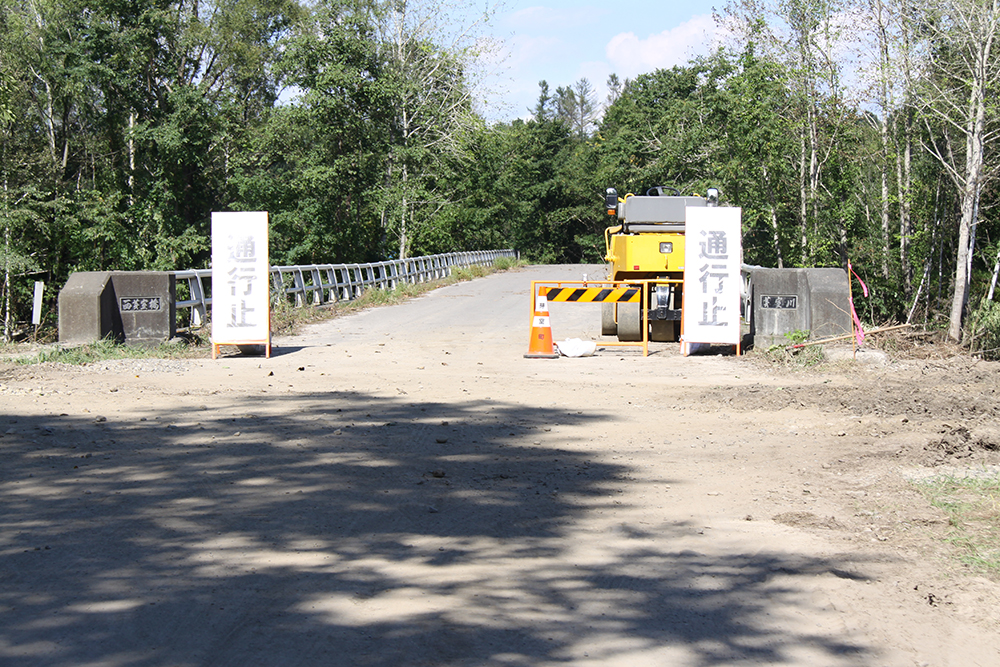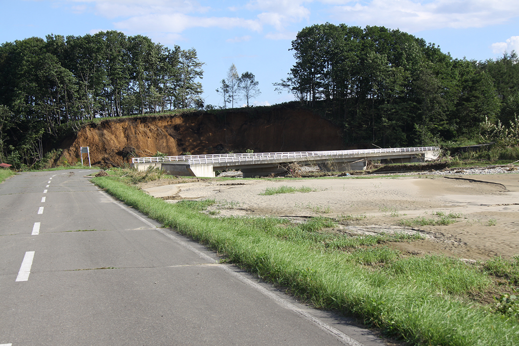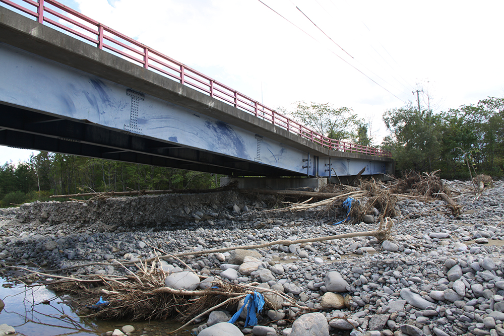 一方、北海道が管理する橋梁は14橋が被災した。背面盛土の流失が13橋で内訳は、松平橋(南富良野町、ルーオマナンソラプチ川渡河部)、第一号橋(同町、シケレベナイ川)、清流橋(同町、ルーオマナンソラプチ川)、上美生橋(芽室町、美生川)、中島橋(帯広市、戸蔦別川)、栄橋(清水町、小林川)、旭山橋(同町、芽室川)、芳名橋(同町、九山川)、樹海橋(上士幌町、ヤンベツ川)、幌鹿橋(同町、同川)、北広内橋(新得町、九号川)、光雲橋(鹿追町、シーシカレベツ川)、ヌビナイ橋(大樹町、ヌビナイ川)となっている。また、1橋は橋脚の河床洗掘による沈下により桁に影響が出ているもので、風雲橋(音更町、然別川)となっている。