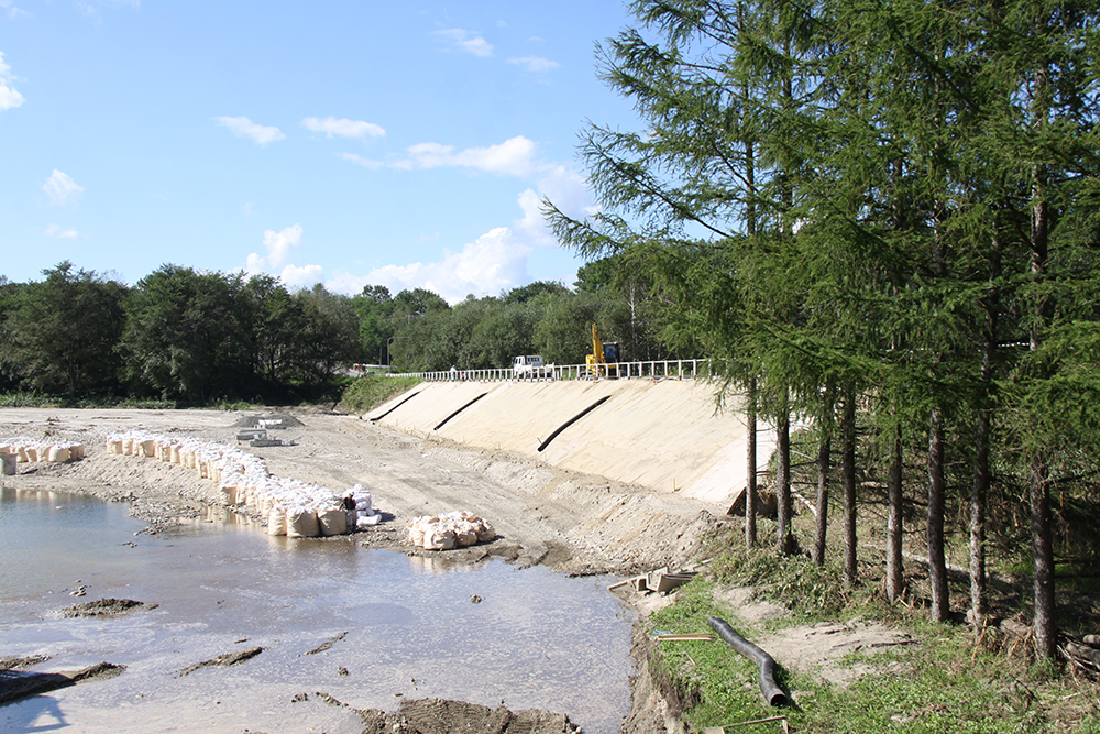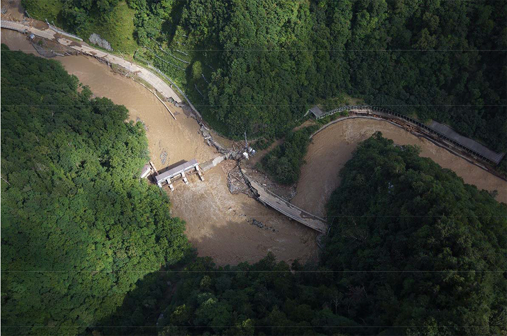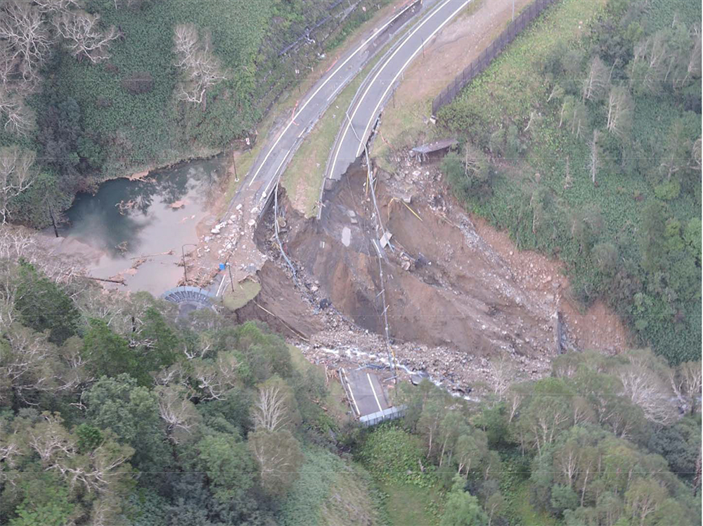 道路も縦断線形的に一番低い部分が盛土崩落などの被害を受けたと考えられる/復旧はほぼ完了
