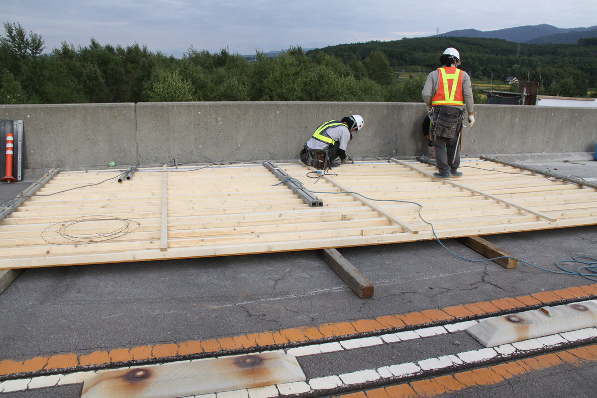 その後、鋼製フィンガージョイントを据え付け、後打ちコンクリートを打設した上で、通行止めを解除した。来年度には、床版全面の点検及び劣化部の補修、床版防水の敷設、舗装の打ち換えを行う予定だ。設計はネクスコ・エンジニアリング北海道。施工はショーボンド建設。はつり工一次下請は第一カッター興業、二次下請(WJ)は久野製作所