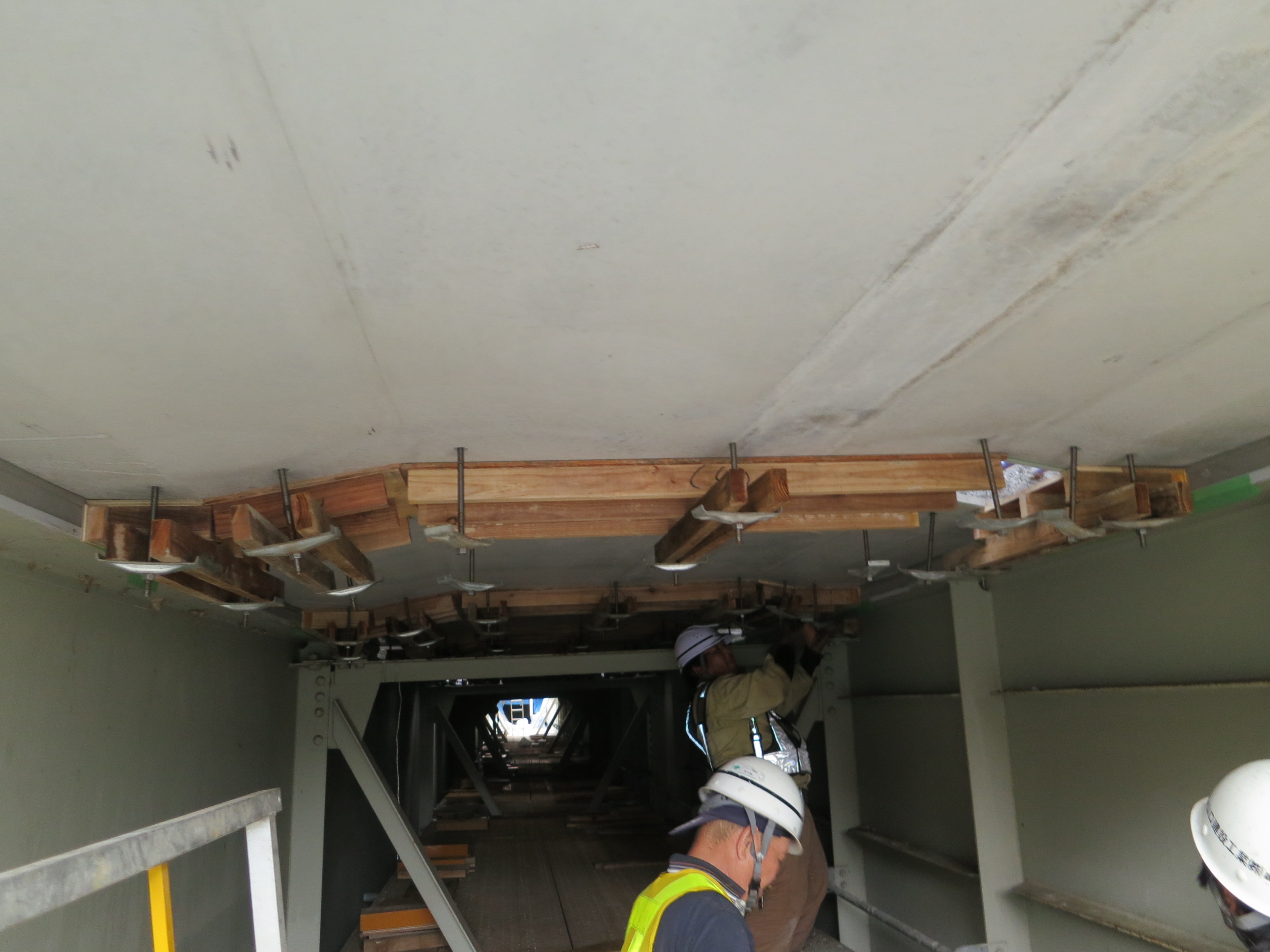 床版取替工事の一次下請は、山口建設工業(型枠、鉄筋、コンクリート工)、日本スタッドウェルディング(スタッド工)、エム・キュービック(非破壊検査)、ナガタ工業(ワイヤーソー、コア、カッター、はつり)、小関興業(床版剥離、撤去、積み込み、床版架設、モルタル)、東洋機械(アンカー削孔)、昭和コンクリート工業(PcaPC版製作、輸送)、フタミ(ウォータージェット)、星工業(伸縮はつり)、北栄電設(電らん管設置)、中部クレーン(160t,120tクレーン)、信州タケエイ(撤去床版運搬、処分)、常盤工業(アスファルト舗装撤去)など。