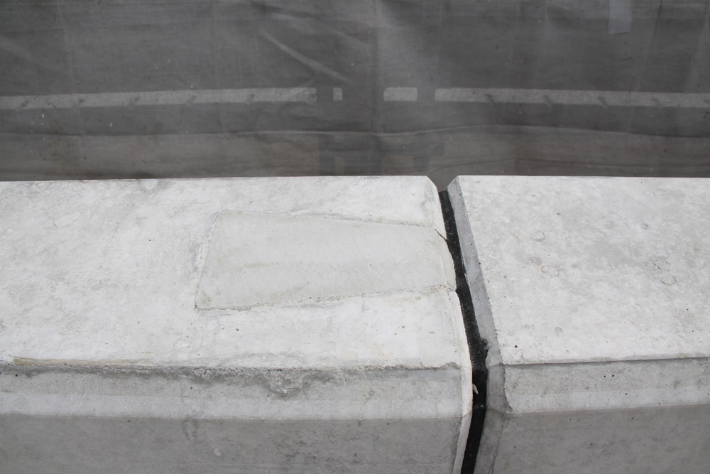 DAK式の採用により工程を6日短縮できた/壁高欄の継ぎ目部分
