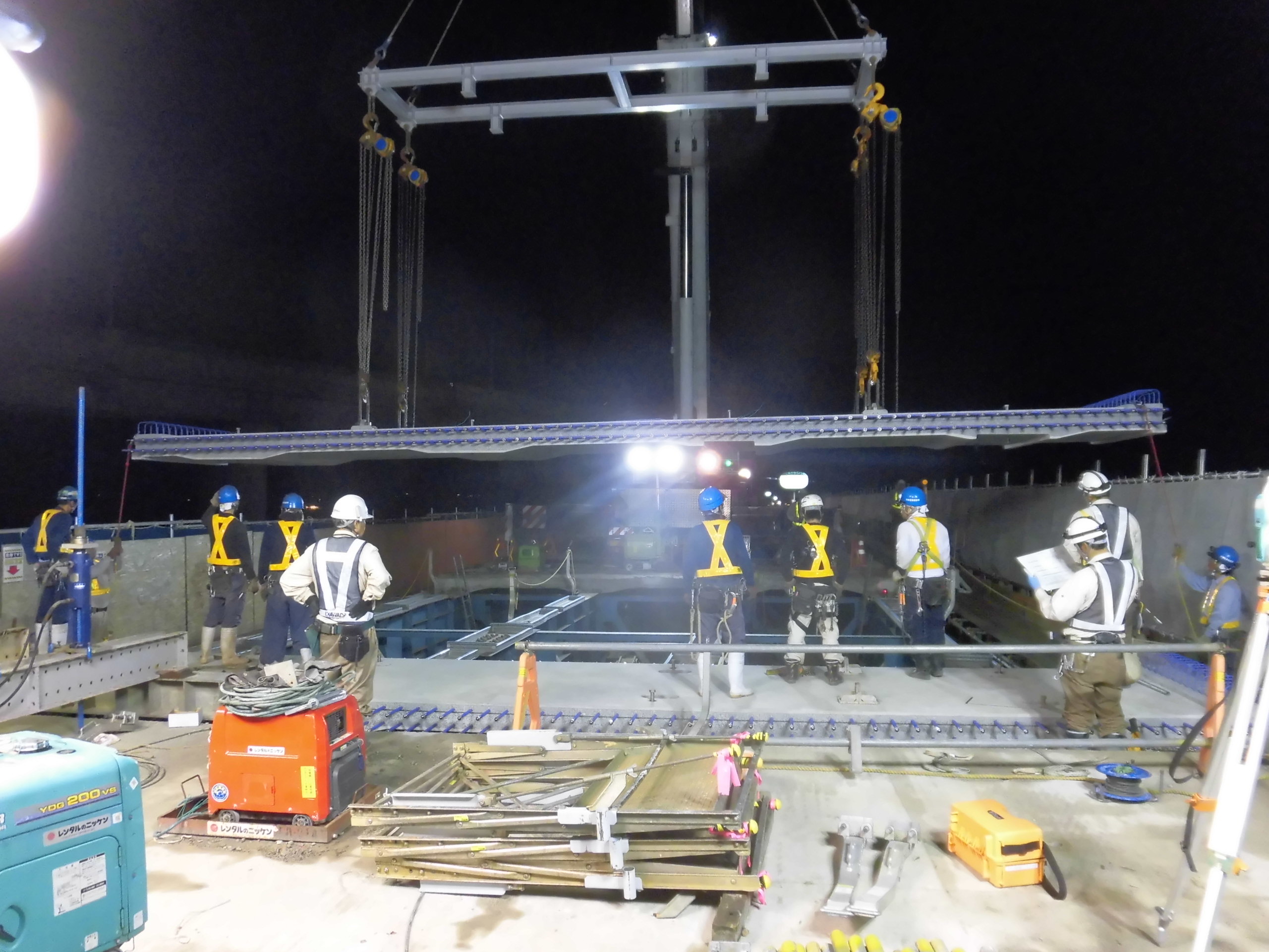 プレキャストPC床版の設置(継手はKK合理化継手方式を採用)