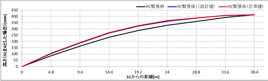 外ケーブル補強後のキャンバー値、ほぼ設計値通りに推移した