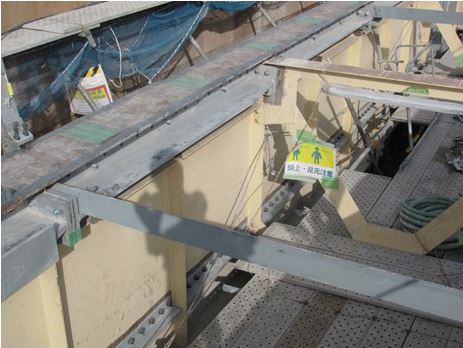 床版撤去 主桁上面を残す形で中間部をまず切断