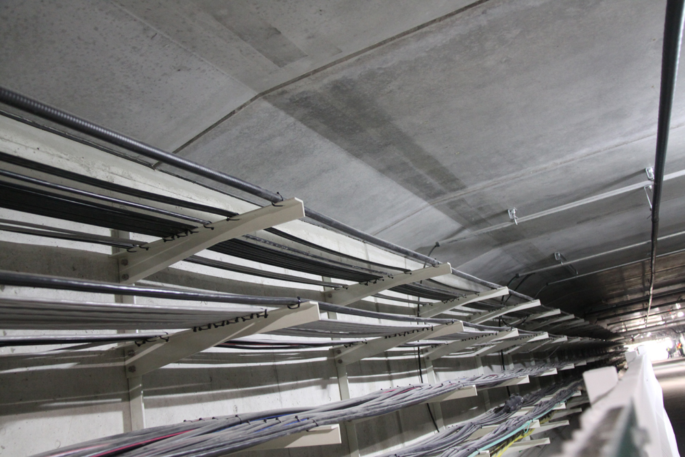 避難用通路は落ち着けるだけの空間的広さがある/避難用通路に各種設備のケーブルも格納している