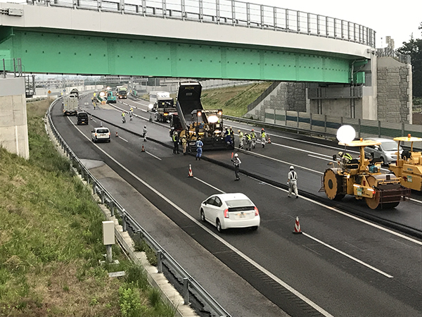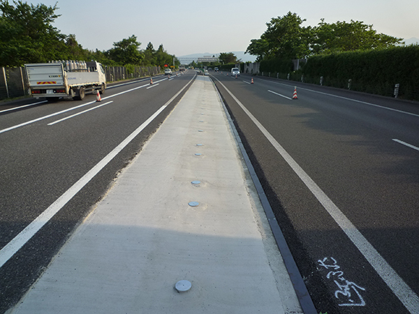 その後高機能舗装Ⅱ型を施工、交通安全施設等を設置し、施工を完了した。