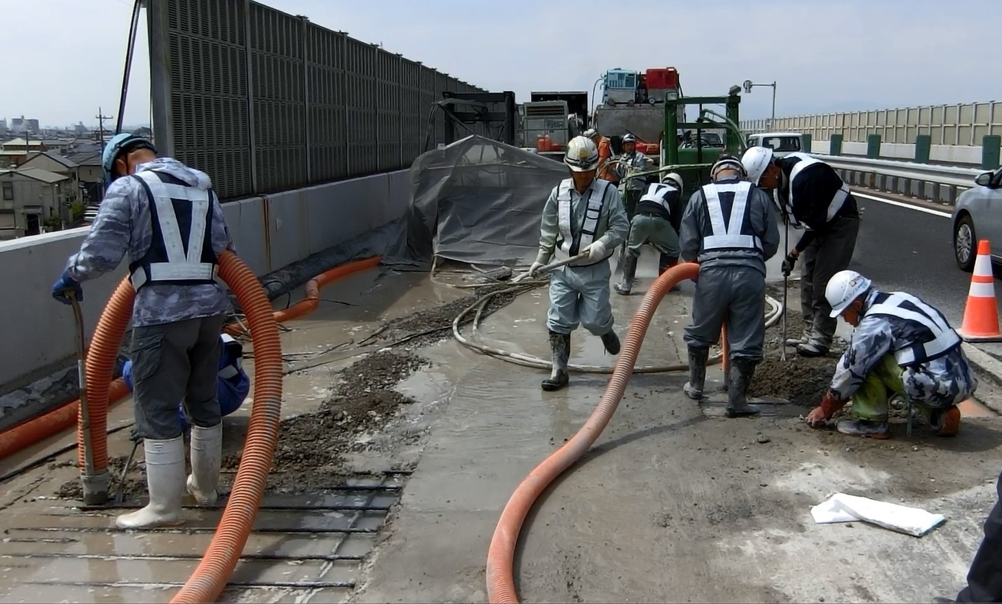 床版上部の補修において部分打ち替えを行う際、脆弱部はWJにより鉄筋裏まではつり、新しい打ち替え用のコンクリートやポリマーセメントモルタルを打設している。しかし、WJのはつり工程で発生するガラは場合によって直径50mm以上に達することも多く、その大きなガラが原因で吸引除去作業用のホースが詰まり、取り除く時間を多く費やすことを見越して、WJはつり作業時間が短くなることもあった。