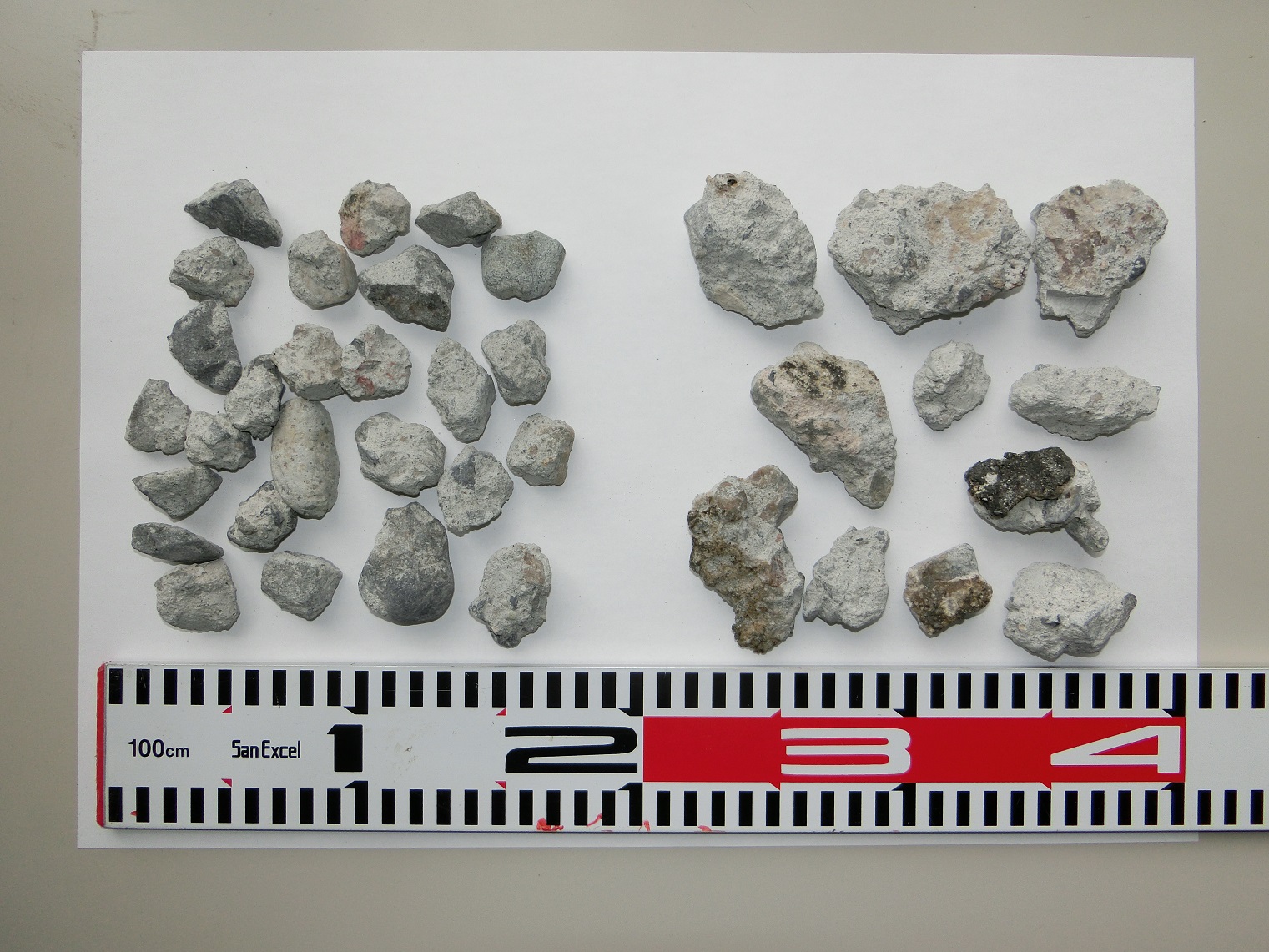 コンクリートガラの径(左がツインロータリーノズルユニット、右が従来タイプ)