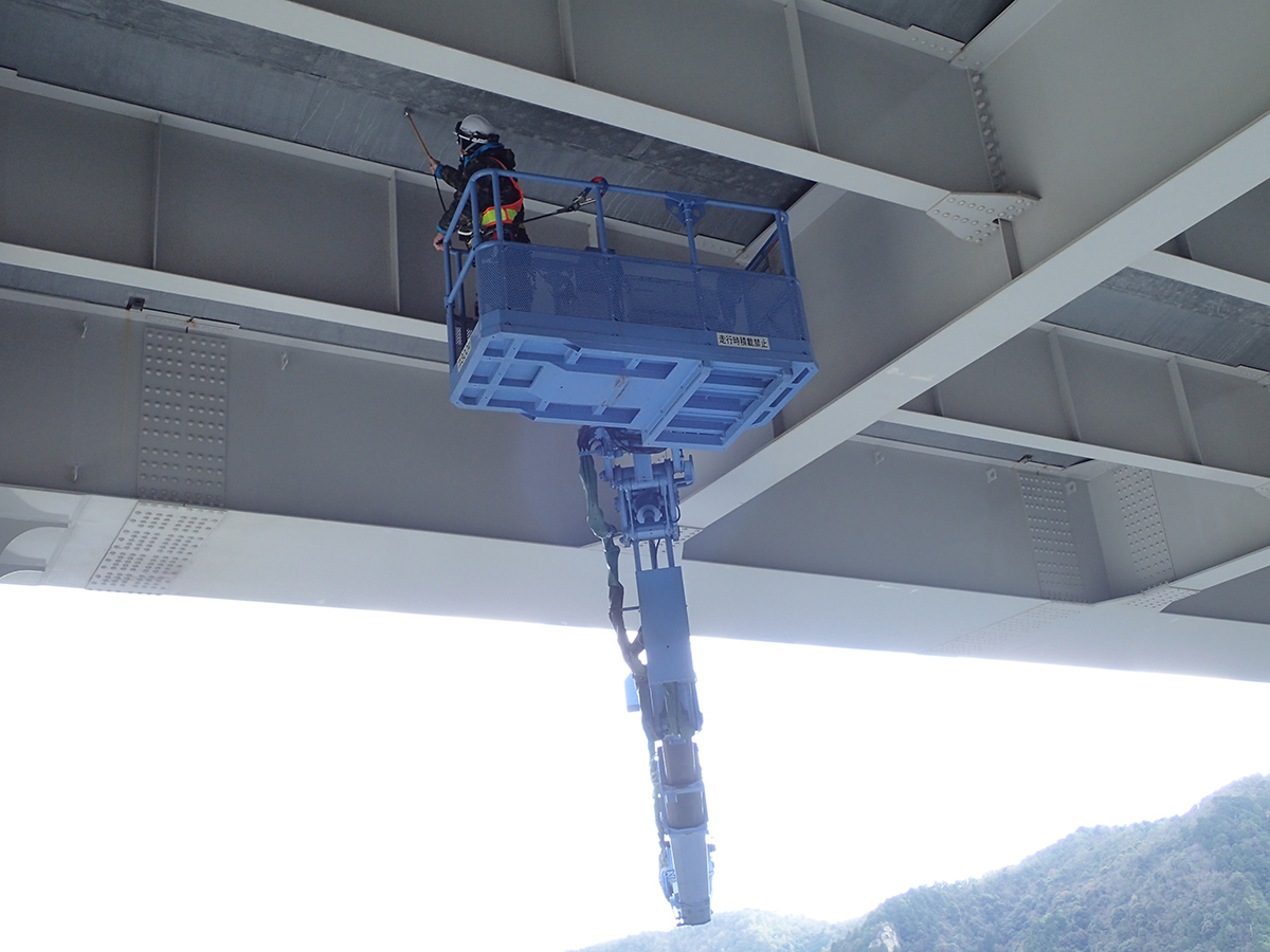 主桁と床版下面の点検は大型橋梁点検車を使用