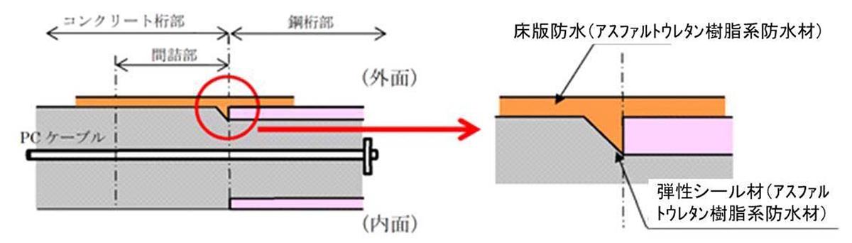 鋼床版及びPCとの継ぎ目部には高性能防水