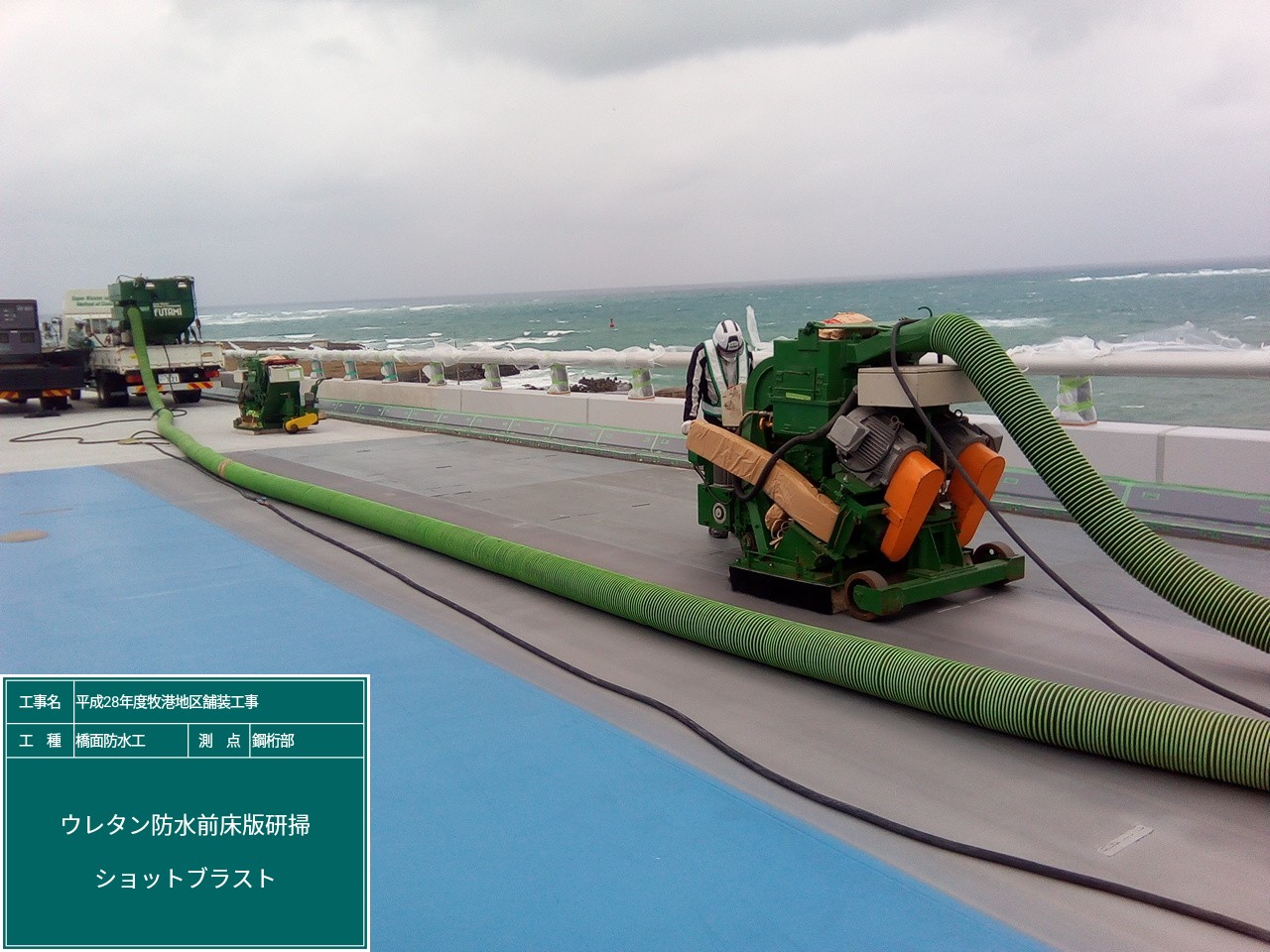 床版Vカット部/防水工施工前の鋼床版へのショットブラスト
