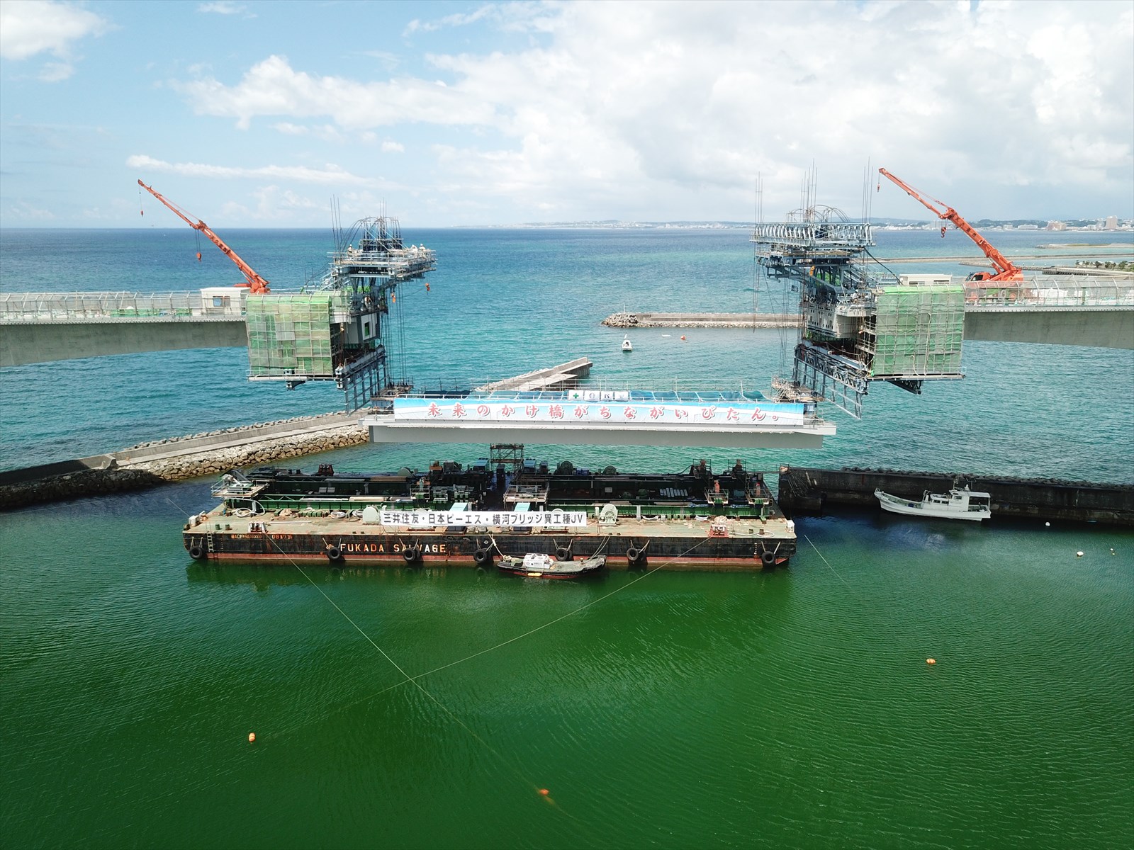 設計は大日本コンサルタント、元請は三井住友建設・日本ピーエス・横河ブリッジJV。PC鋼材は住友電工スチールワイヤ、極東鋼弦コンクリート。