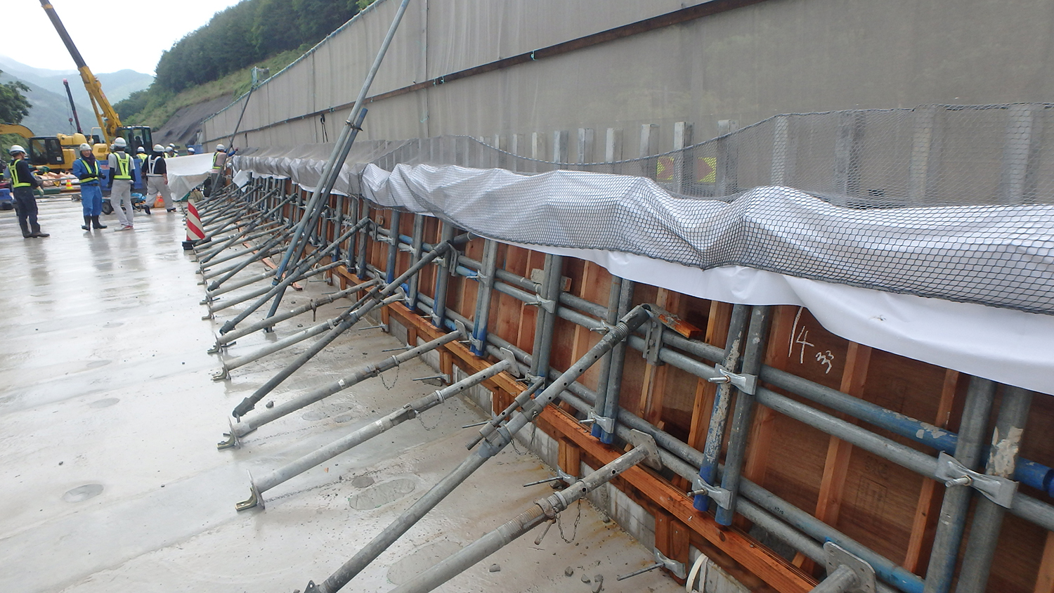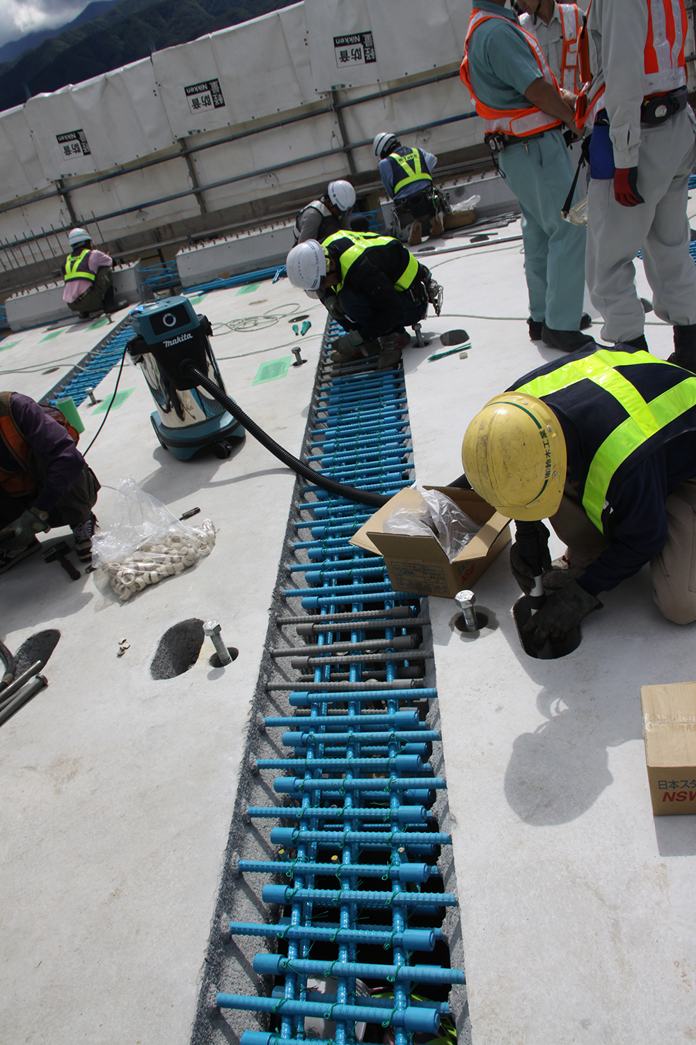 壁高欄コンクリートの養生/伸縮装置の設置