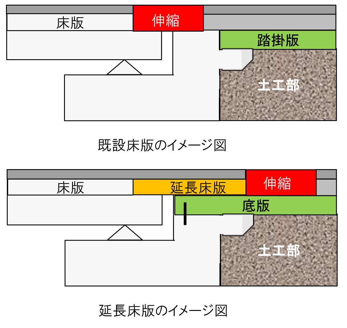 加えて桁端部の騒音振動や漏水による劣化を抑制するため、延長床版を用いる。