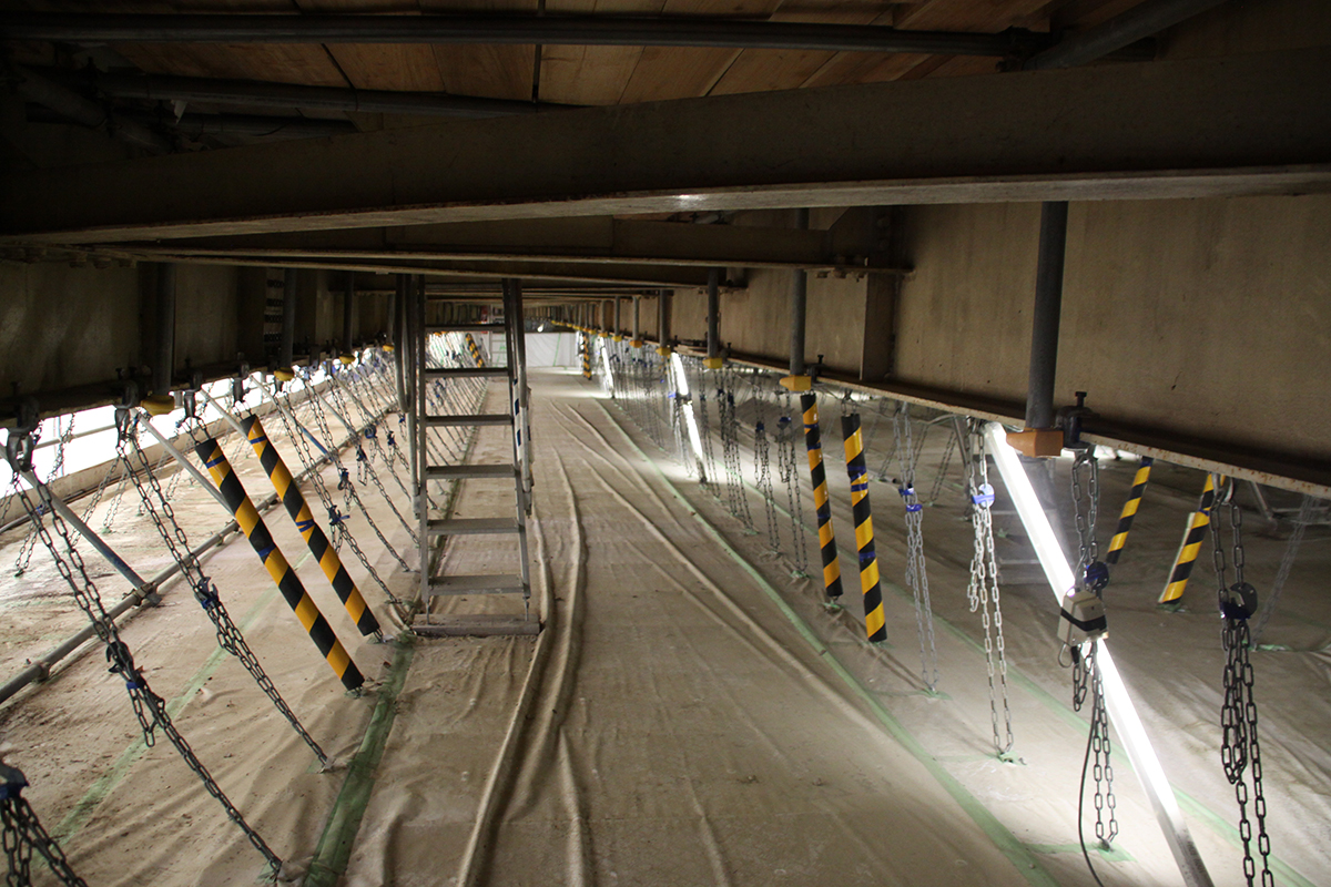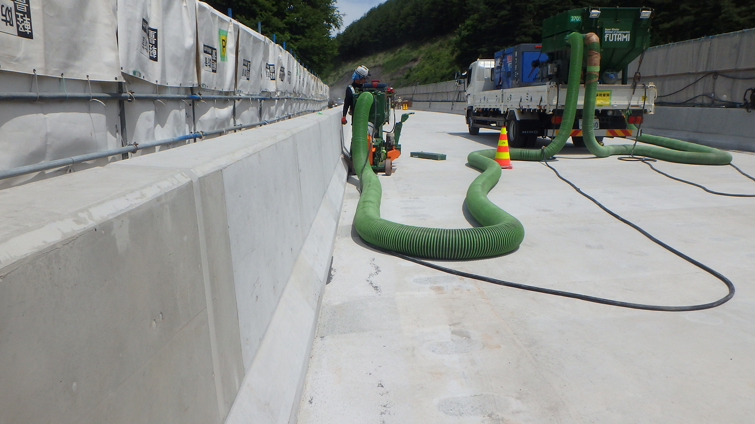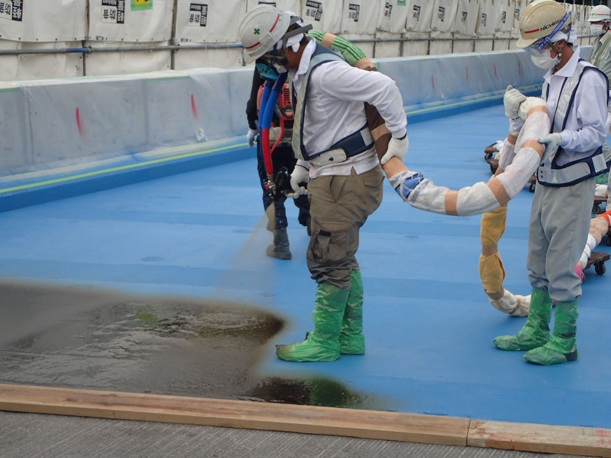 平出高架橋床版取替工事現場のもうひとつの特徴は安全対策の充実だ。