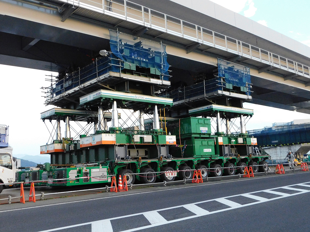 NEXCO東日本 東北中央自動車道で多軸式特殊台車を用いて一括架設