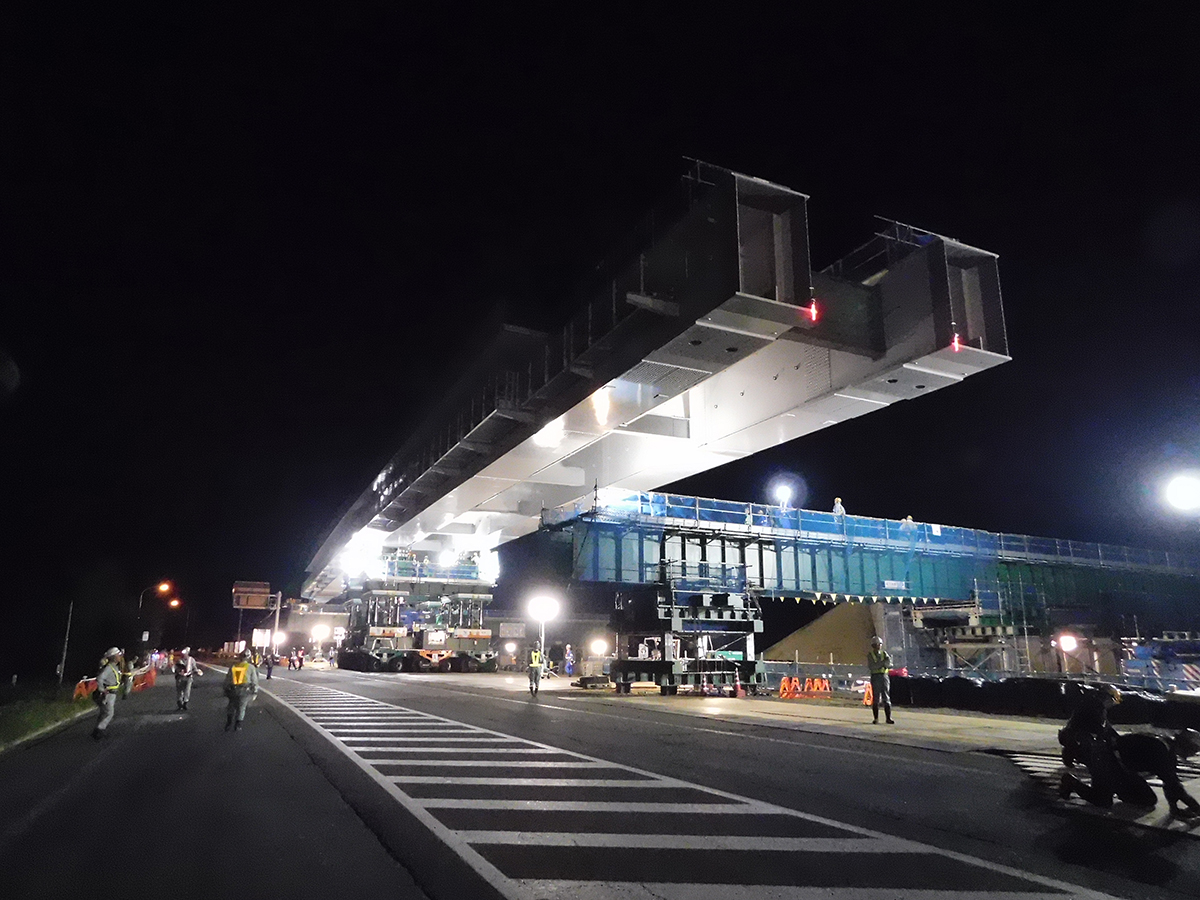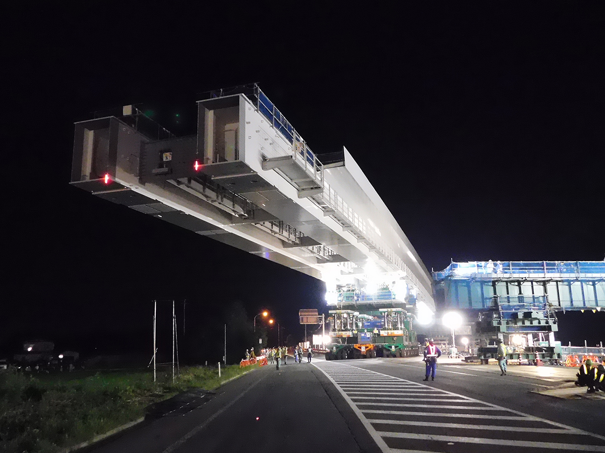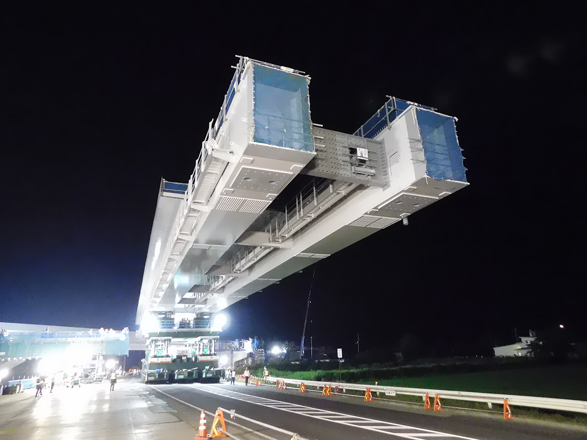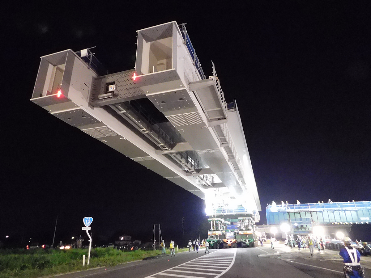 NEXCO東日本 東北中央自動車道で多軸式特殊台車を用いて一括架設