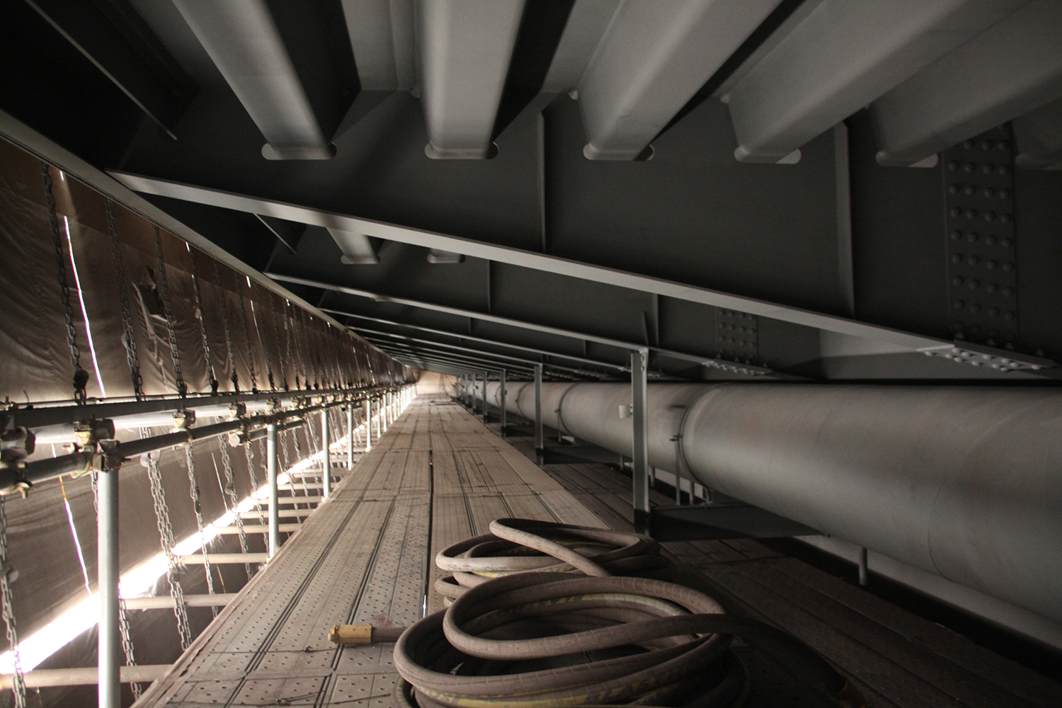 桁を覆う足場(右橋梁)
