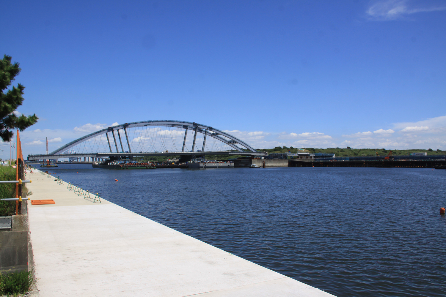 現場はランプ橋(西側)を除き、臨海道路横断橋、ランプ橋(東側)などの施工を完了している。ランプ橋(西側)も来年3月には架設を完了する予定で、舗装も6月までには施工を終える予定だ。