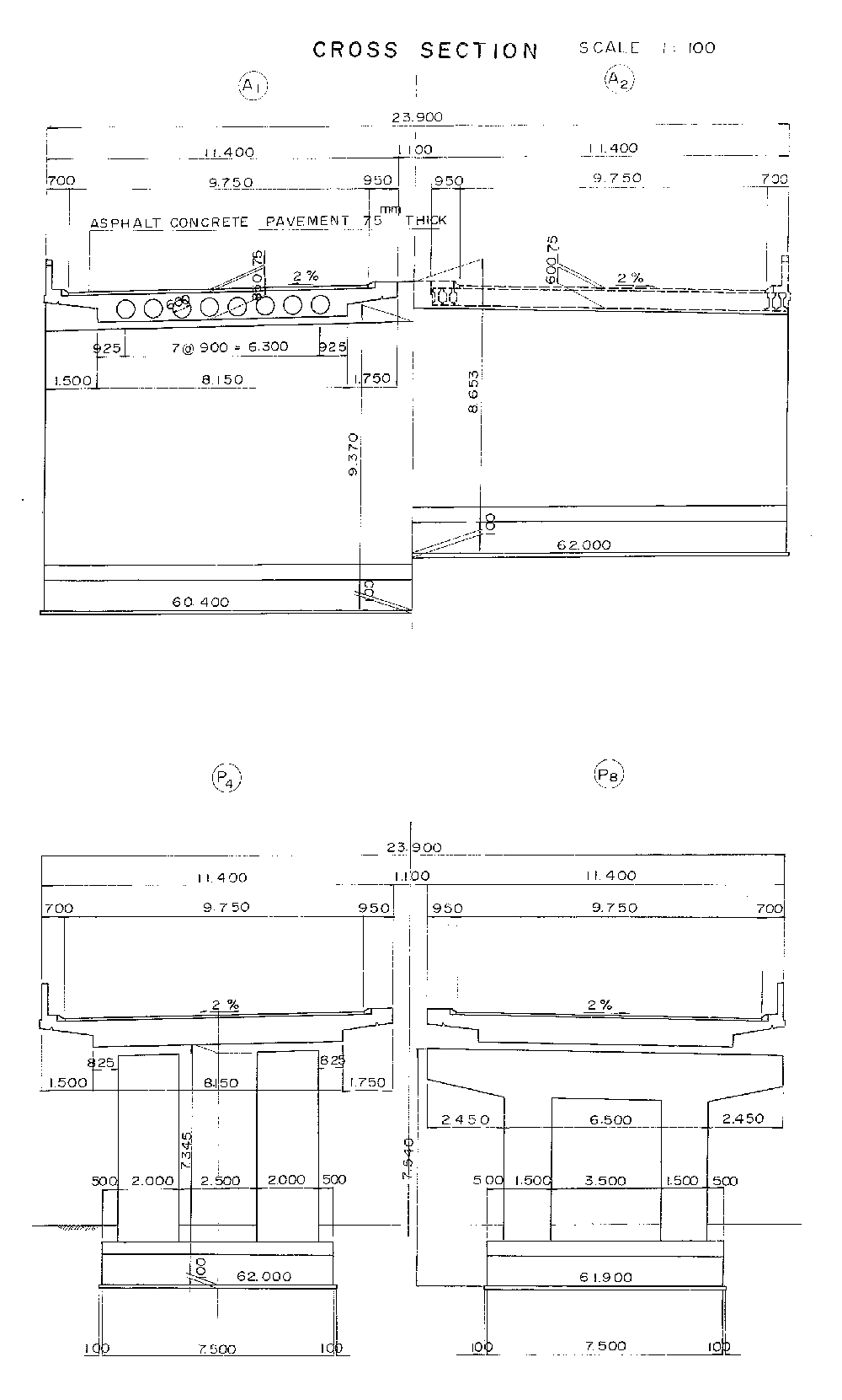 既設橋縦断図/既設橋断面図(NEXCO西日本提供)