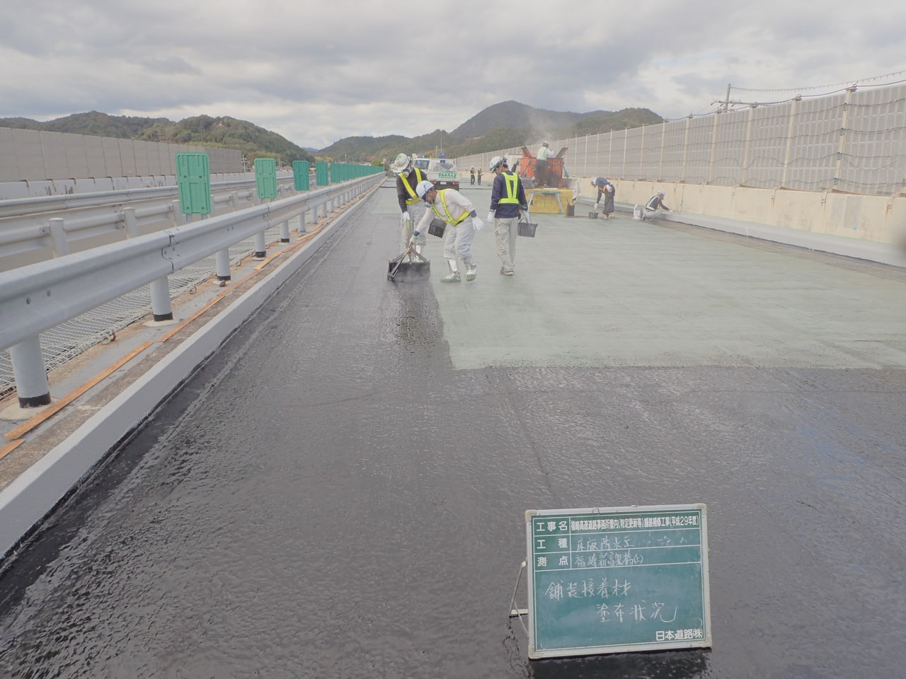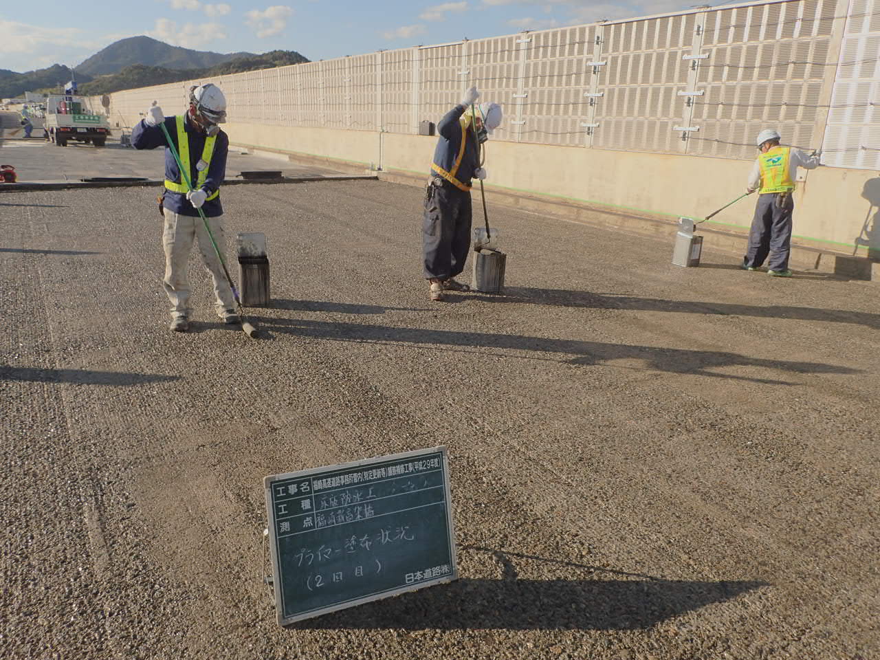 床版防水層の施工②層間プライマーの塗布/舗装接着層の塗布