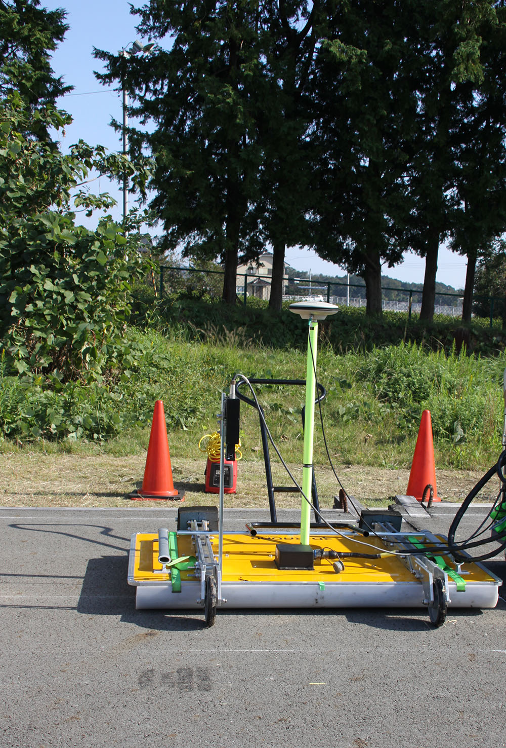 その場でも概略的な判定は行えるが、通常車載でやる場合には、持ち帰ってデータ整理してから解析している。業務としては1ヶ月弱あれば詳細な解析データことができる。レーダーは米国子会社のGSSIのシステムを用いている。